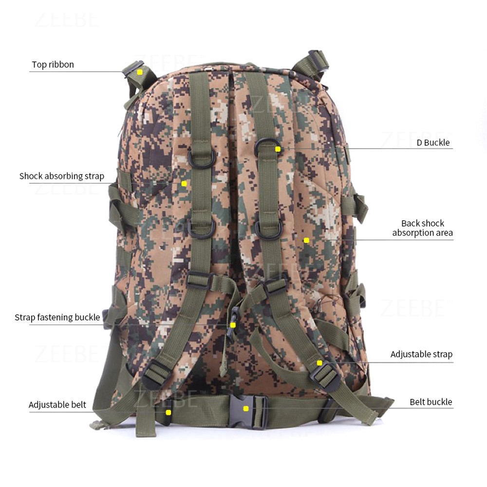 ZEEBE Army 40L Military 3P PUBG Attack Tactical Backpack Outdoor Travel Bag