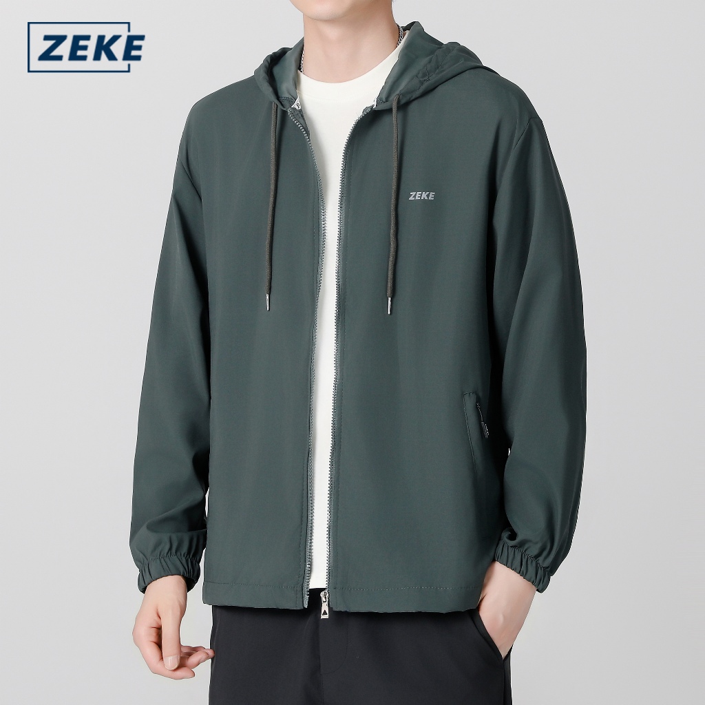 ZEKE C0021 Hooded Waterproof Reflective Windbreaker Jacket Lelaki Lengan Panjang Tracksuit