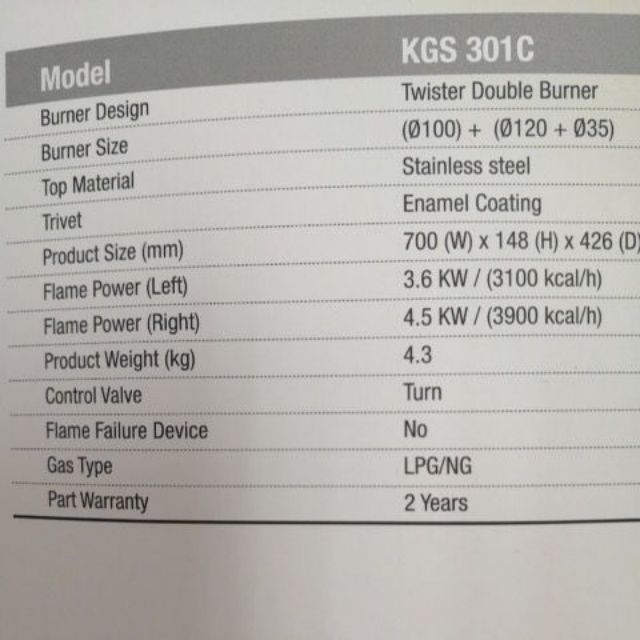 ZENNE DOUBLE STOVE GAS COOKER (KGS301C-SS)