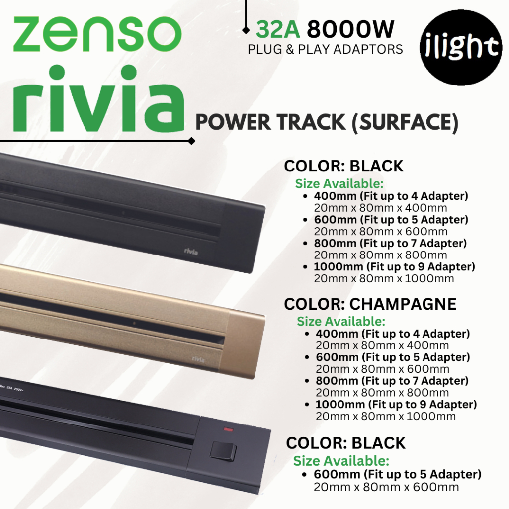 ZENSO RIVIA Power Track & Adaptor 13A Flat Multi Uni USB Type A+C Surface Power Track *Not Compatible W/ Other Brand*