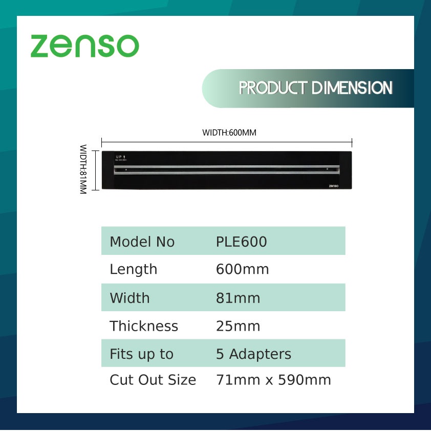ZENSO - Z.Line Power Track-BLACK (Embedded) + FREE 4unit 13A Power Socket Adapter Zline(not compatible with Eubiq)