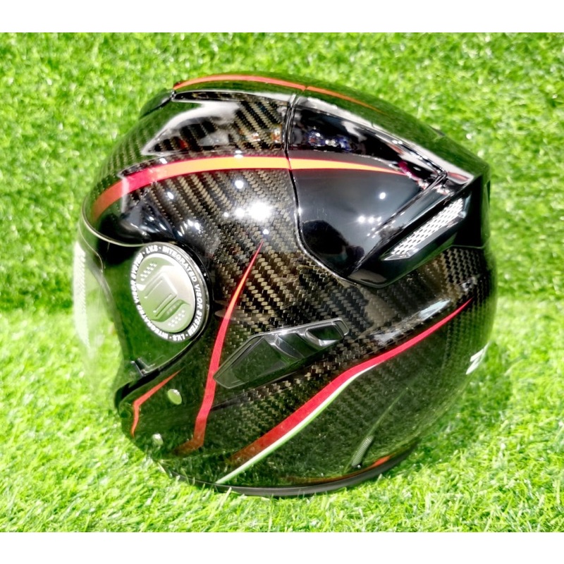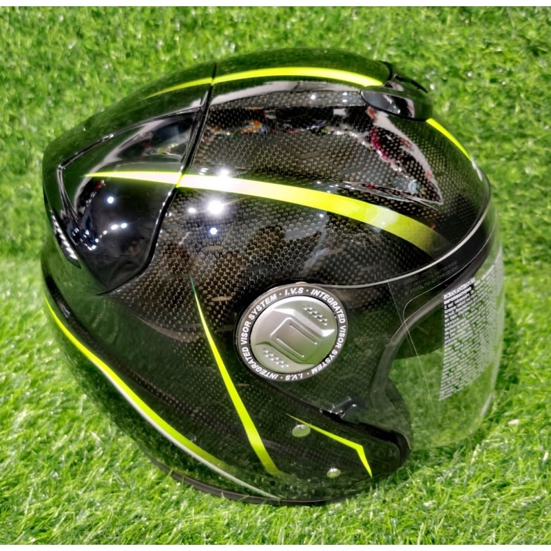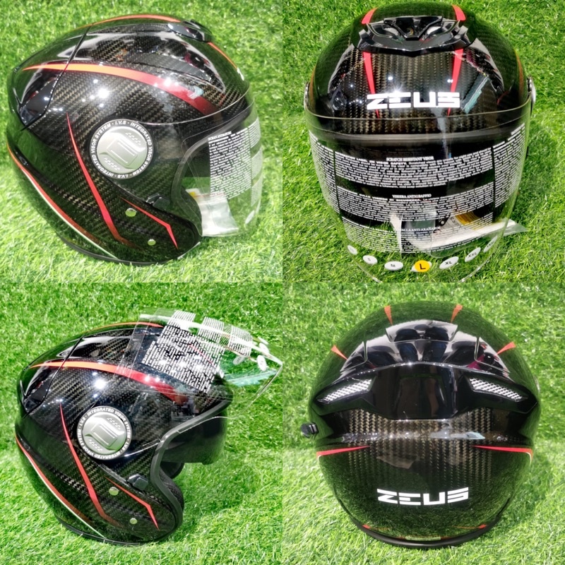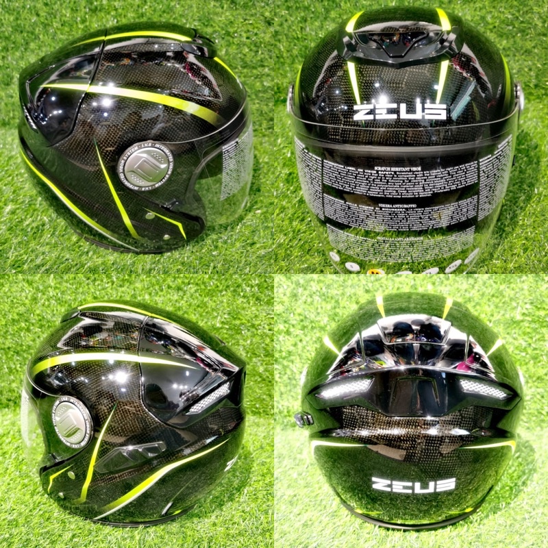 ZEUS CARBON RED / YELLOW CD1 GJ-608 GJ608 OPEN FACE HELMET
