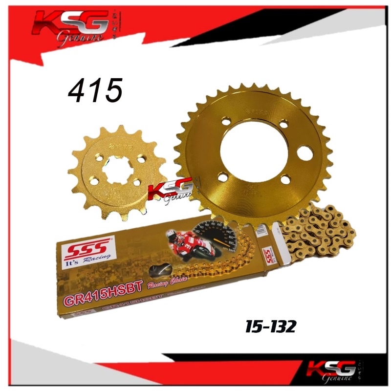 ZFORE Racing Sprocket 415 Set + SSS 415 Full Gold Chain Rantai GR415HSBT LC135v1~v8 Y125ZR RXZ
