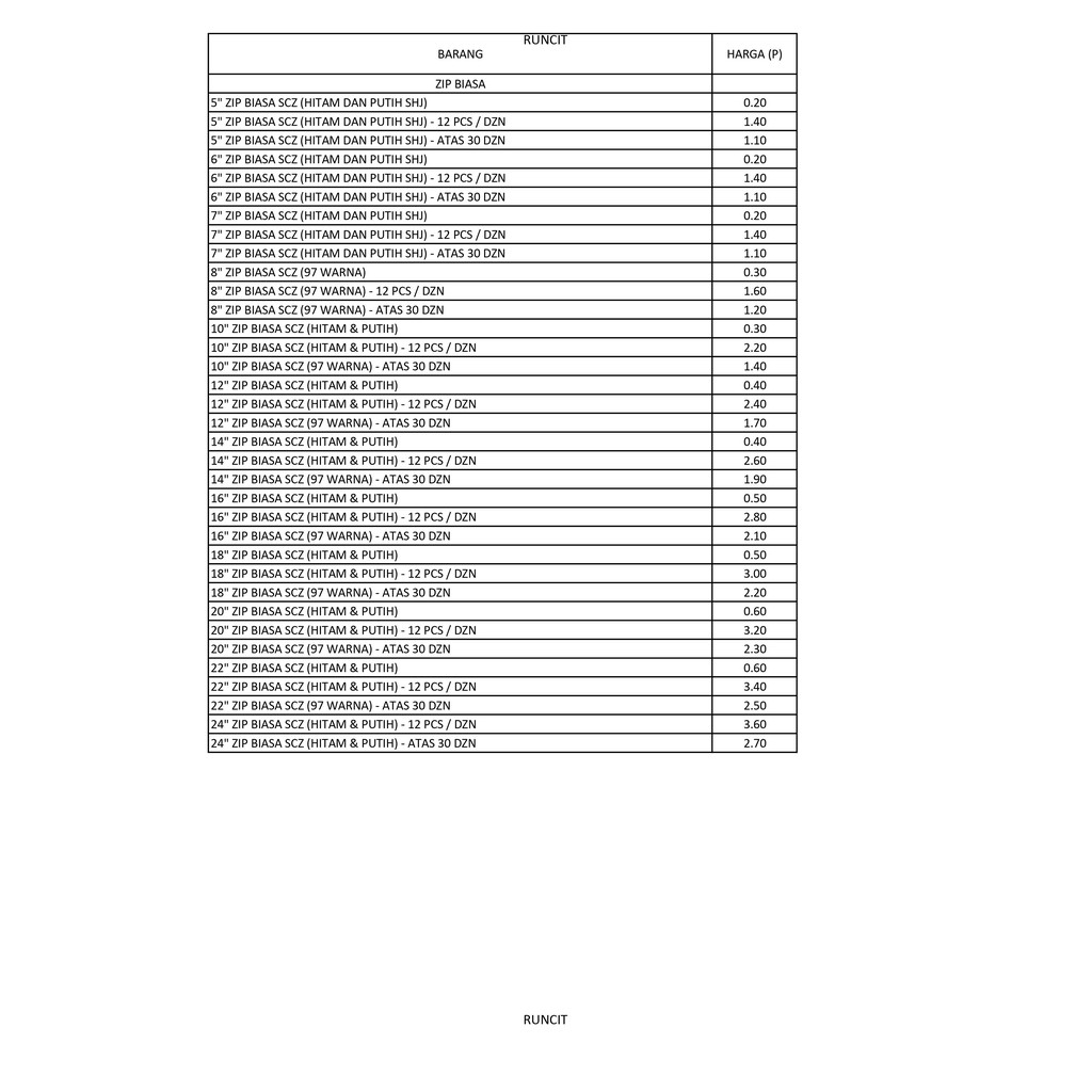 ZIP BIASA (SCZ - BUATAN MALAYSIA) - SAIZ 6" HINGGA 24" (HITAM & PUTIH SAHAJA)
