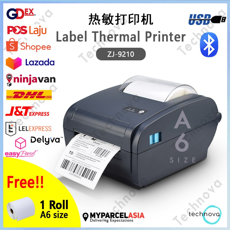 ZJ model A6 Thermal Printer Waybill Barcode Shipping Label Consignment Note Android iOS [Free 1 roll A6 label]