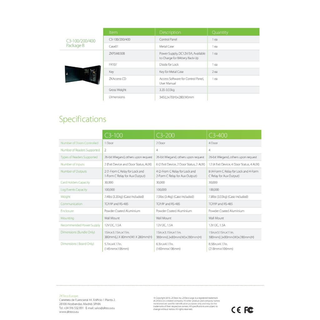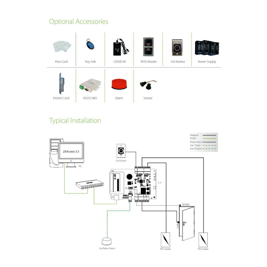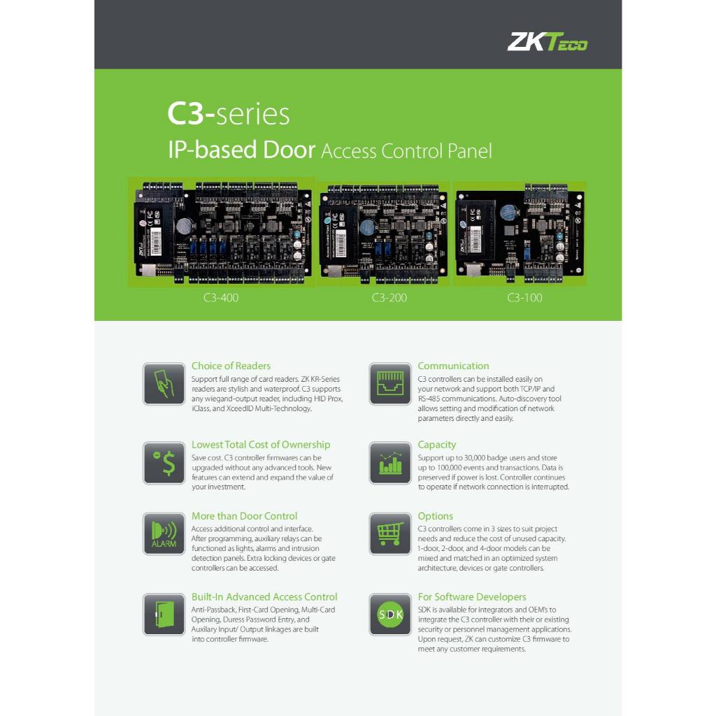 ZKTECO C3-200PB Door Access Support 2 Door / 4 Readers c/w ZkTeco Metal Box + Power Supply IP-based Door Access Control