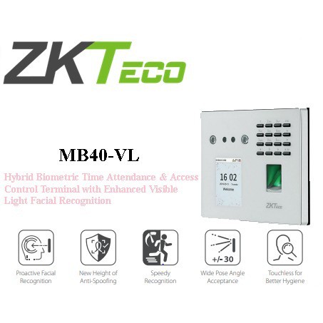ZKTECO MB40-VL/ID MULTI BIOMETRIC FINGERPRINT & FACE RECOGNITION DEVICE(ADMS INCLUDED)