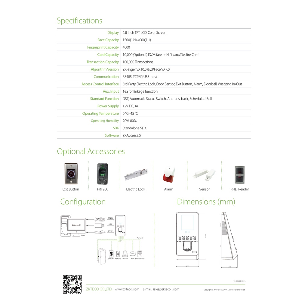 ZKTeco MultiBio 800H/ 800H-ID Door Access Control & Time Attendance Terminal Support Face & Fingerprint | Billionmark