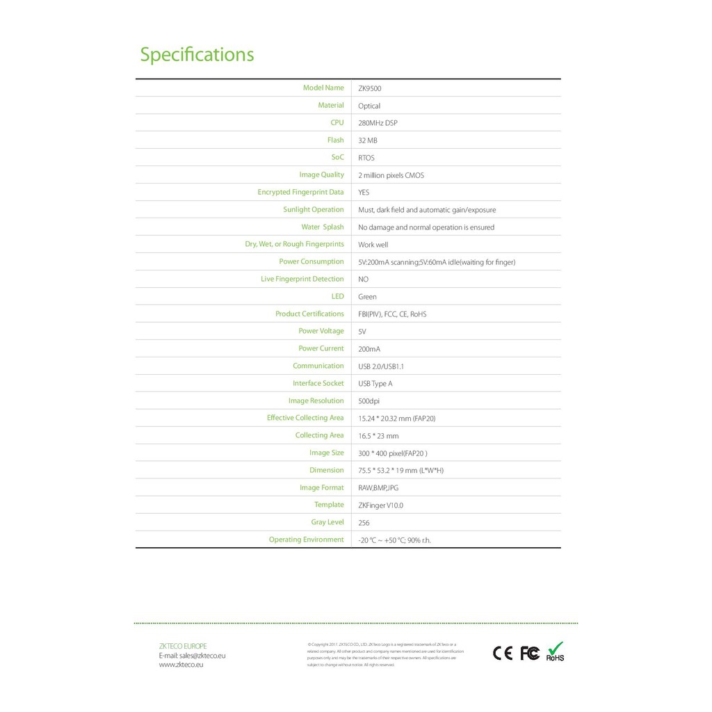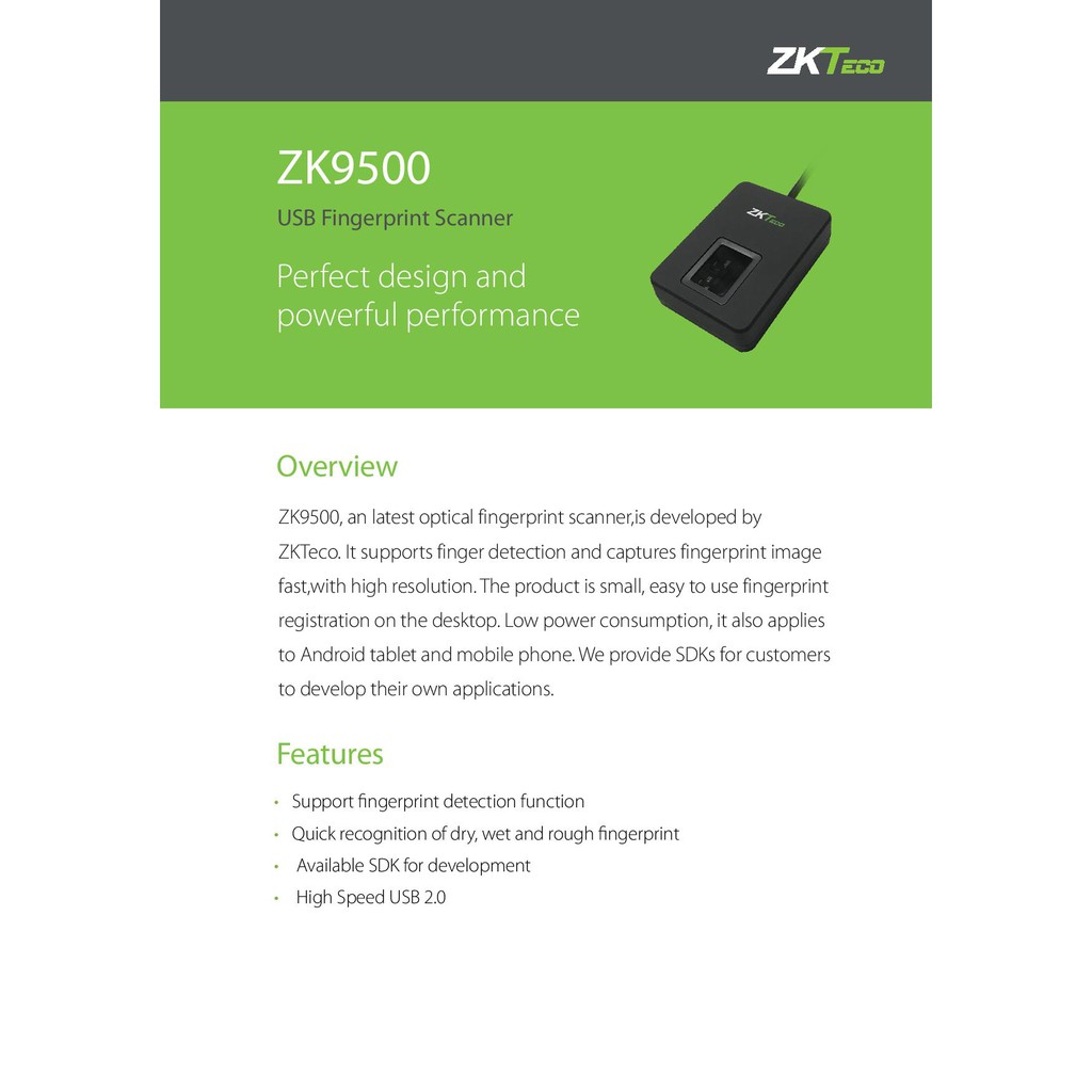 ZKTeco ZK9500 USB Fingerprint Enrollment Reader Support Win10/8/7, Support USB Only.