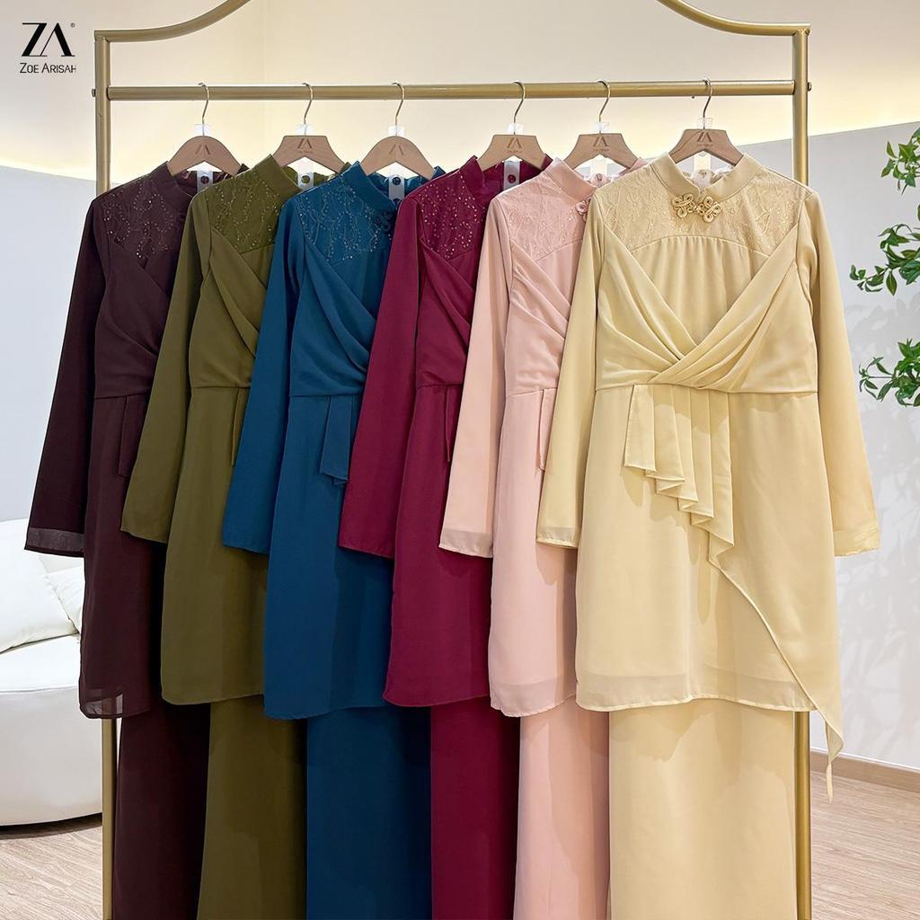 [Last Minute Deal] ZOE ARISAH Tevira Mandarin Kurung Premium Chiffon Cheongsam Baju Raya 2026 Moden Lace Ruffle Murah