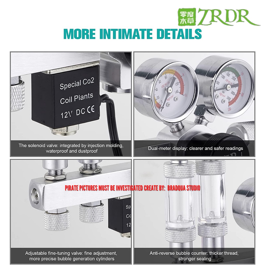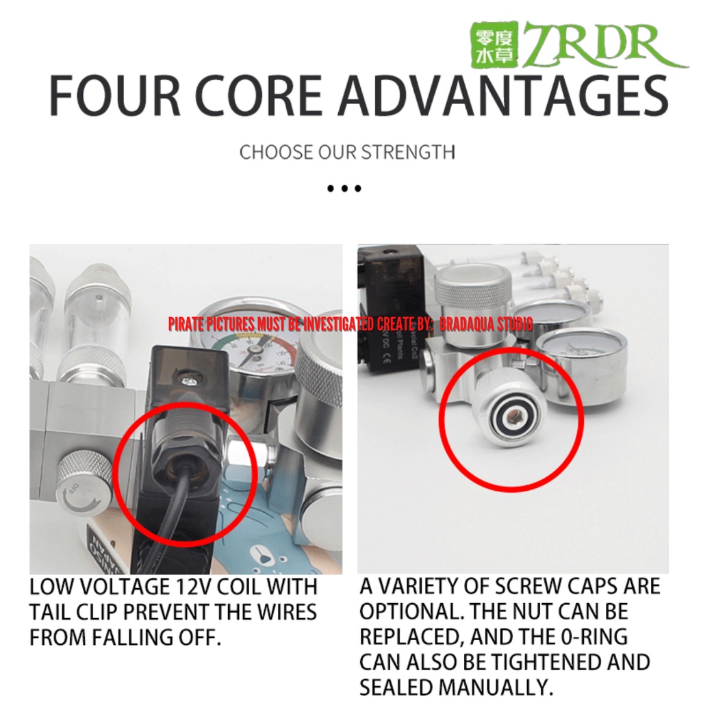 ZRDR Dual Stage CO2 Regulator Adjustable Output Pressure with DC Solenoid and Integrated High Precision Needle Valve