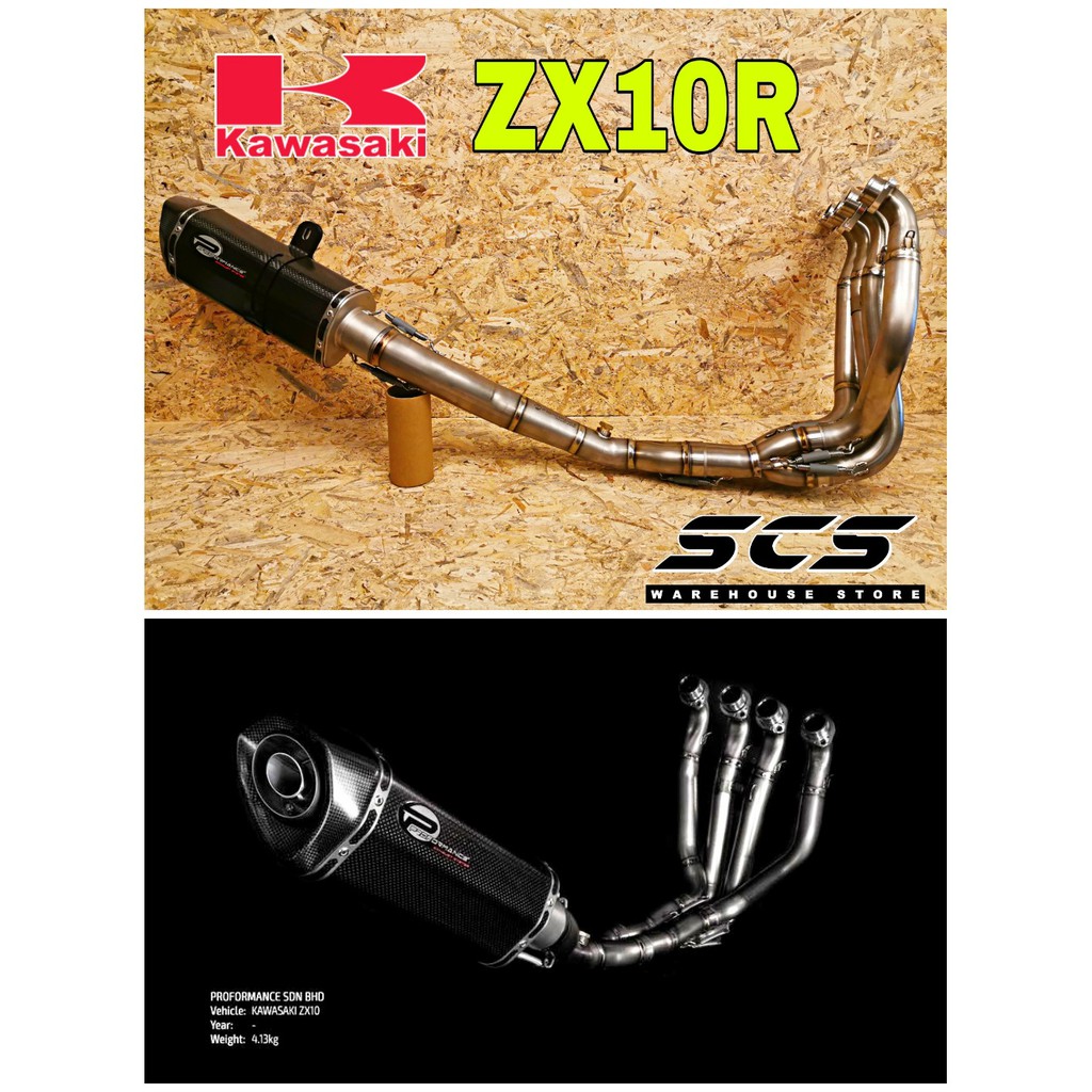 ZX10 Full System Titanium Exhaust Kawasaki ZX10R Proformance Superbike EKZOS Tabung Muffler Carbon Fiber Ready Stock
