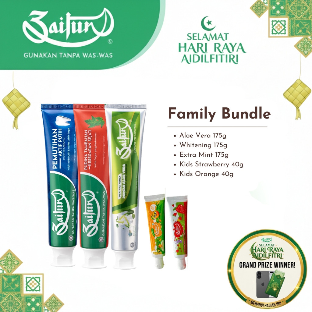 Zaitun Toothpaste Family Bundle - Mint + Whitening + Aloe Vera + Kids Toothpastes Ubat Gigi Halal