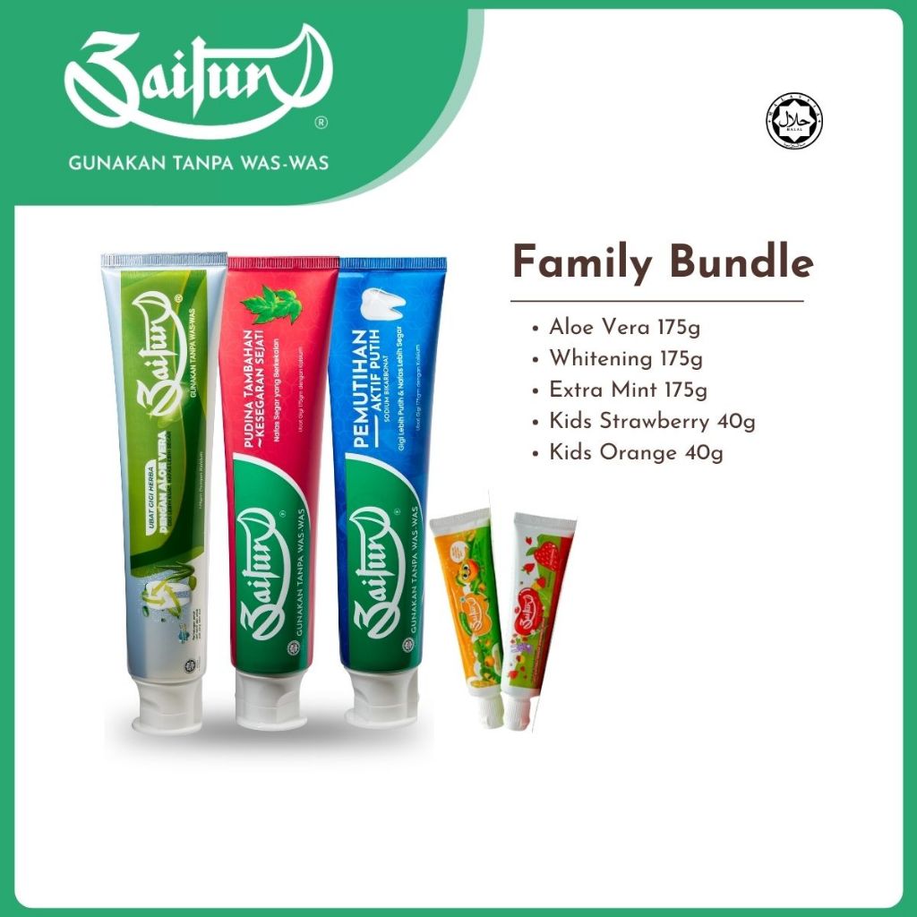 Zaitun Toothpaste Starter Pack Set Aloe Vera + Whitening + Extra Mint (175g x 3) Ubat Gigi Halal
