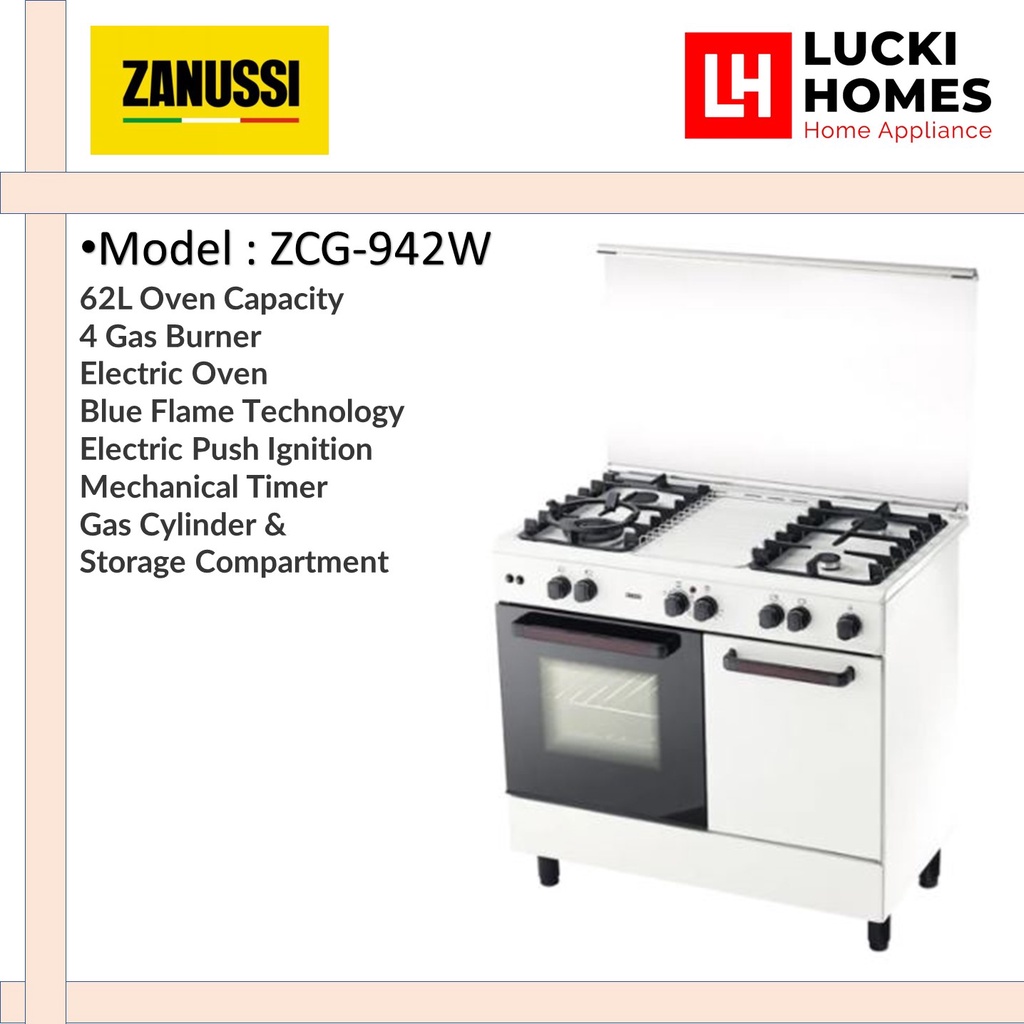 Zanussi ZCG942W 4 Burner 62L Freestanding Gas Cooker With Electric Oven