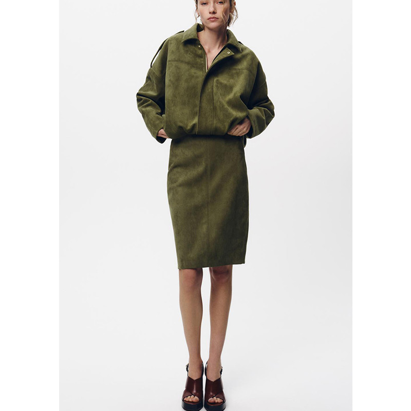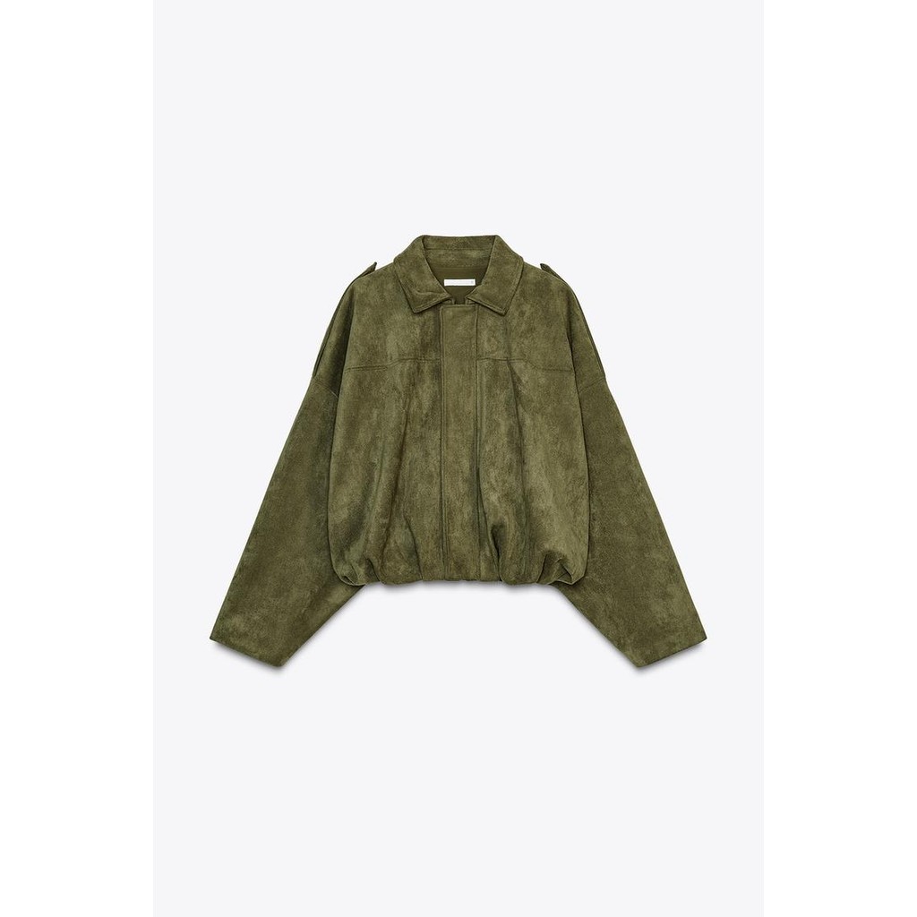 Zara Spring New Product Women's Suede Texture Effect Bomber Jacket Coat 4344155