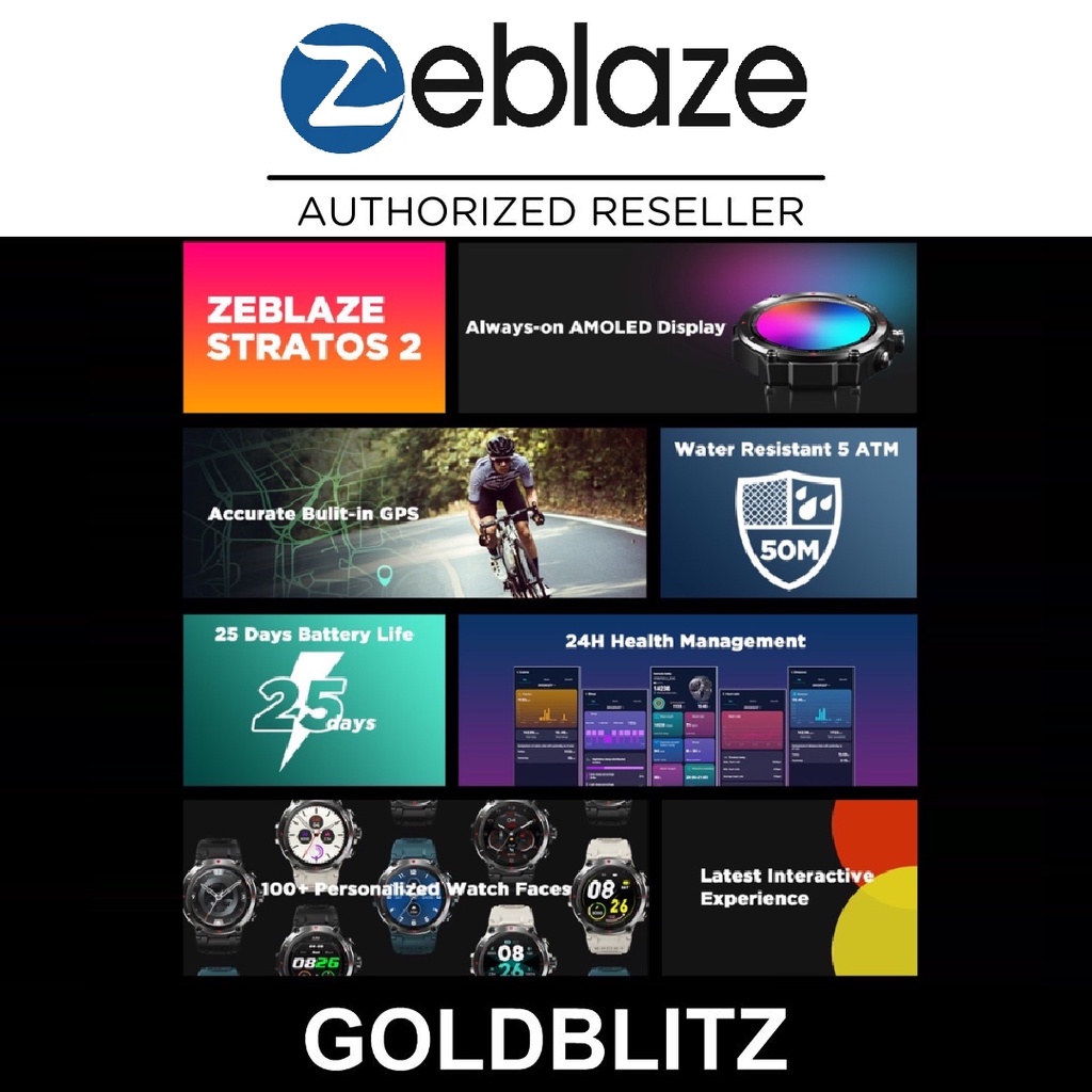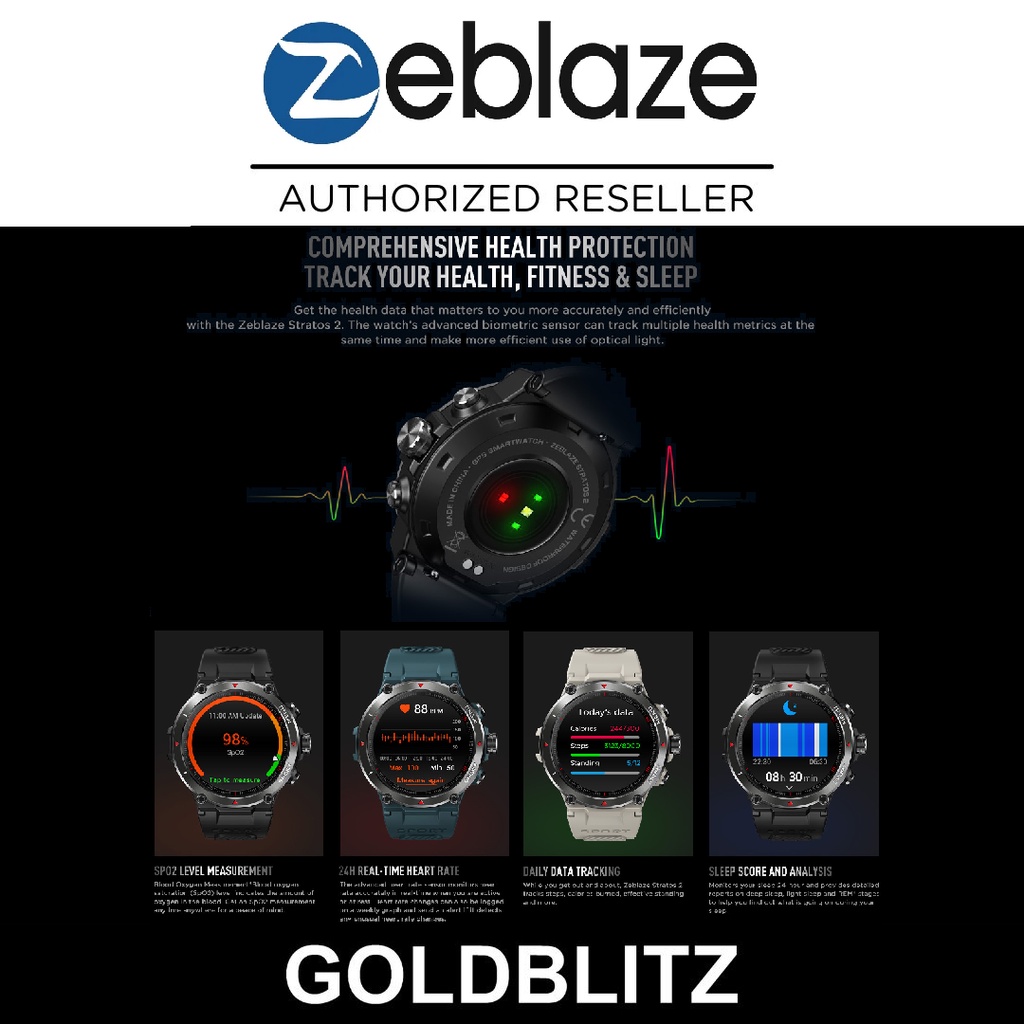 Zeblaze Stratos 2 Always-On AMOLED Display 4 Satellite GPS Heart Rate Blood Pressure SpO2 Monitor Stratos2 Smartwatch