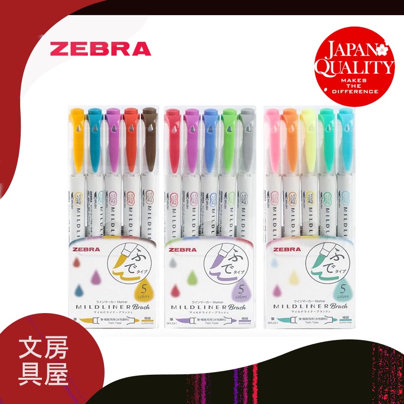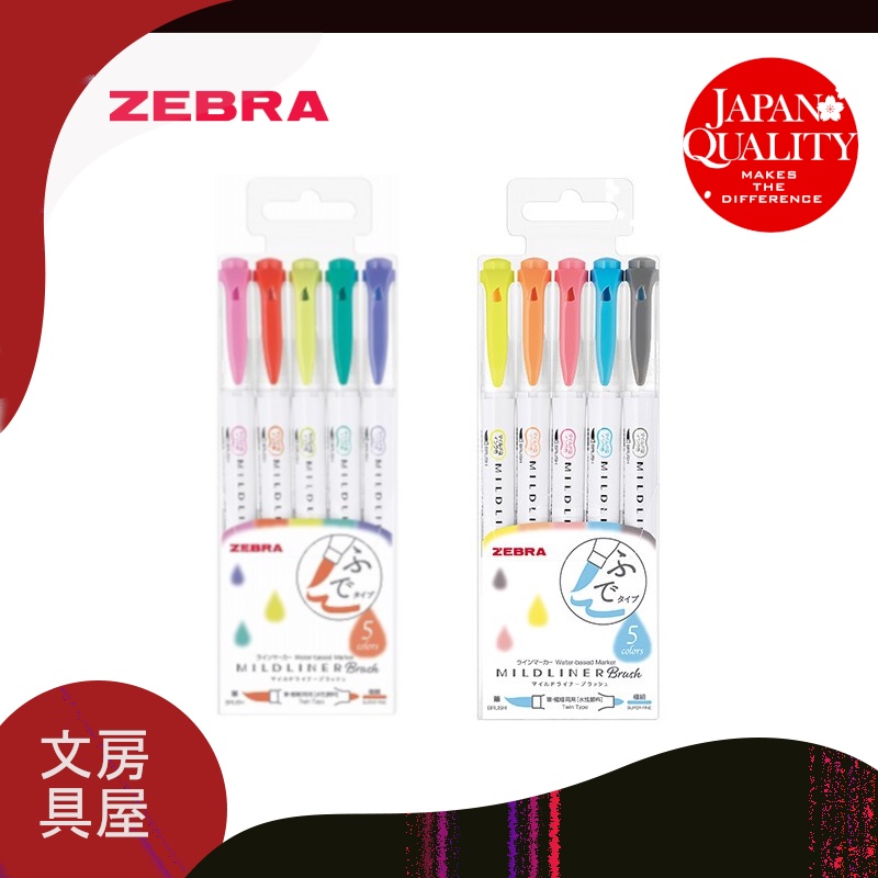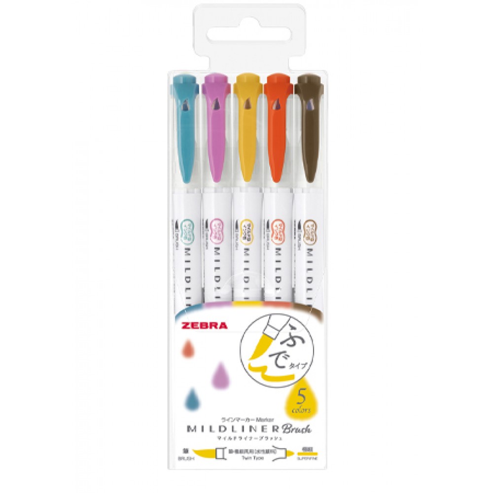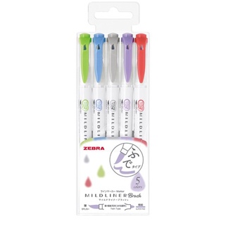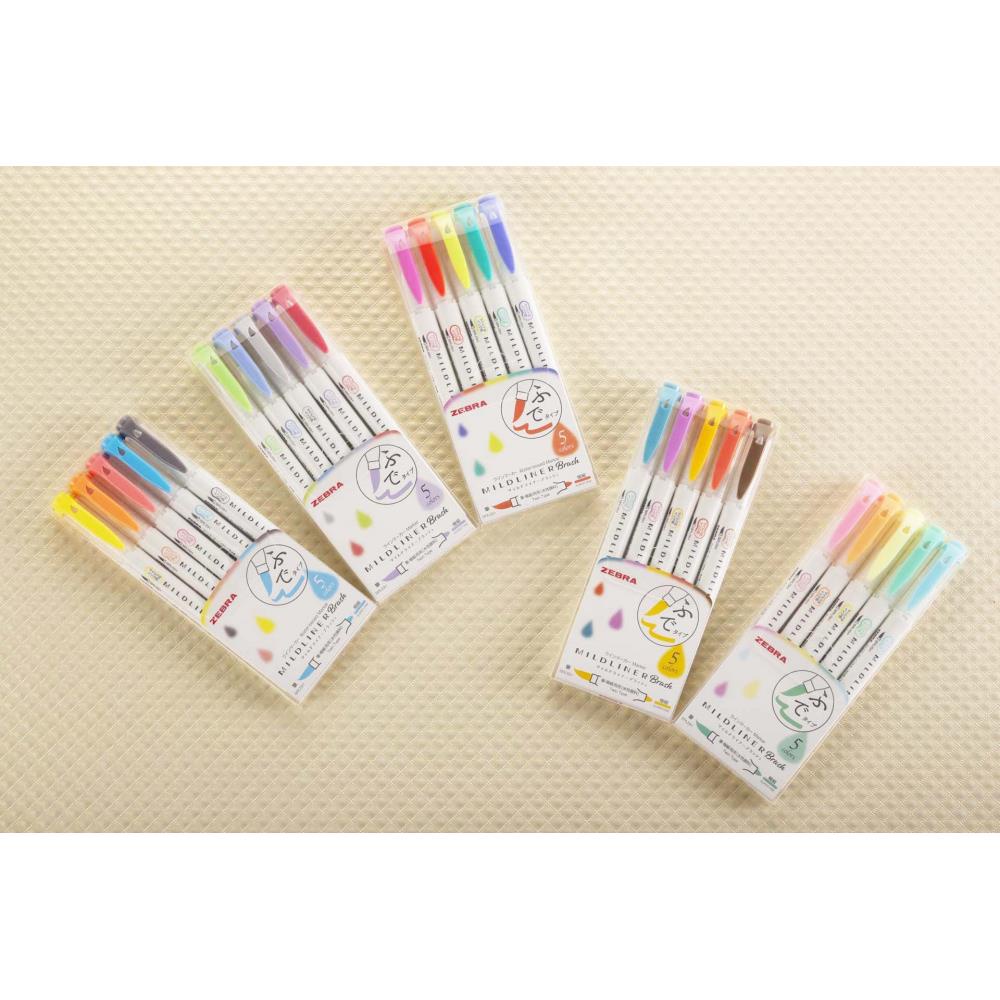 Zebra Mildliner Brush Double-Sided Highlighter Brush 5-Color Set
