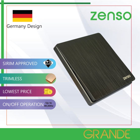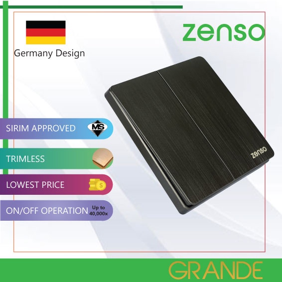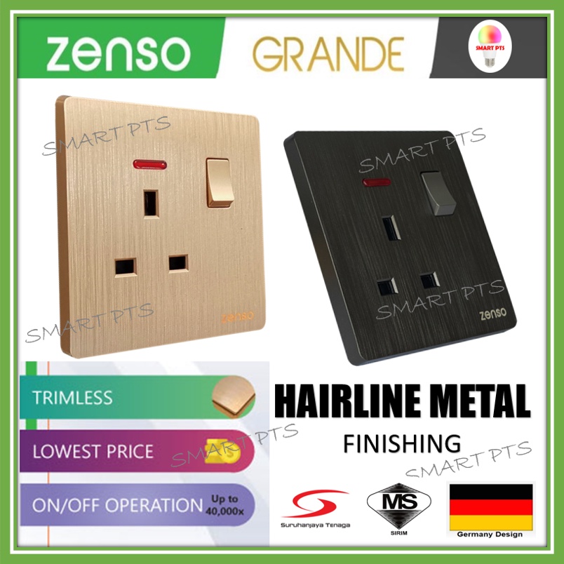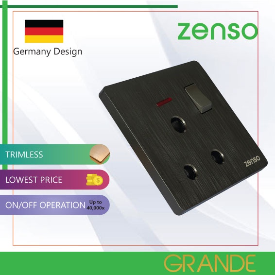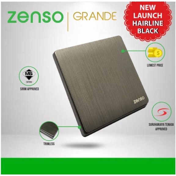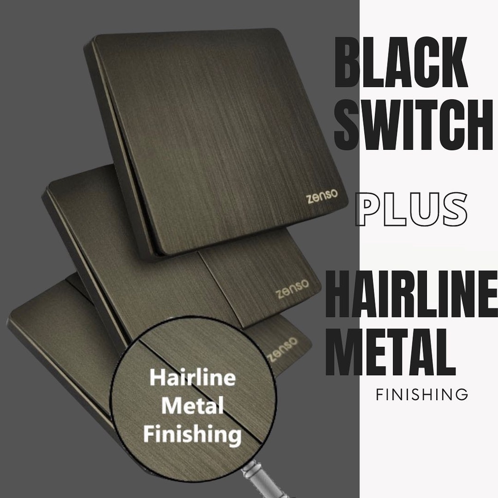 Zenso Grande HAIRLINE BLACK Switch Socket 13A 15A 20A 1g 2g 3g 4g Bell Press Auto Gate Suis lampu Kipas Hitam