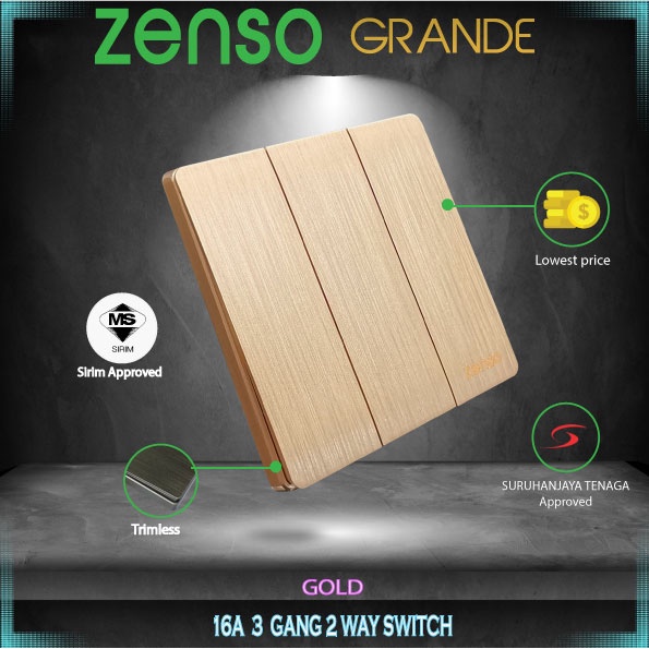 Zenso Grande Switches & Sockets - Gold Color #1 gang 2 Way#2 gang 2 Way#3 gang 2 Way#4 gang 2 Way