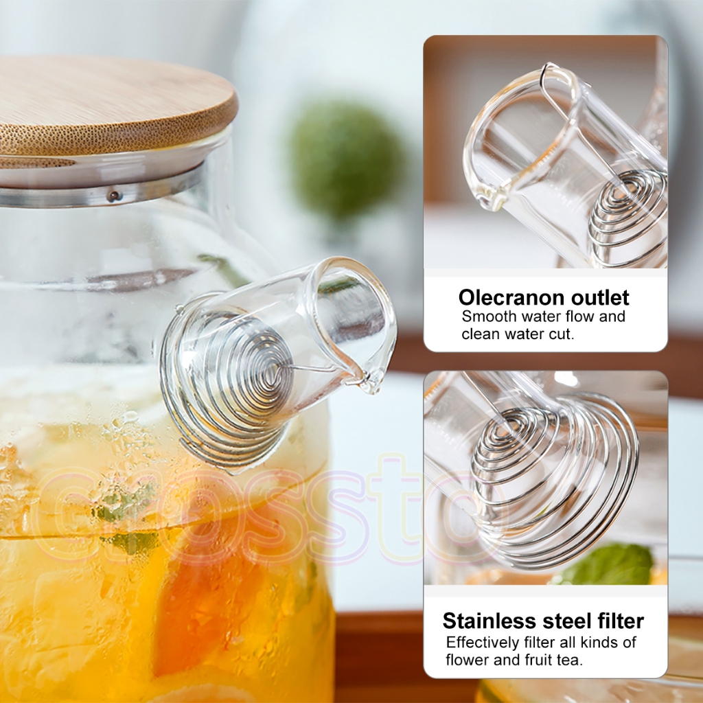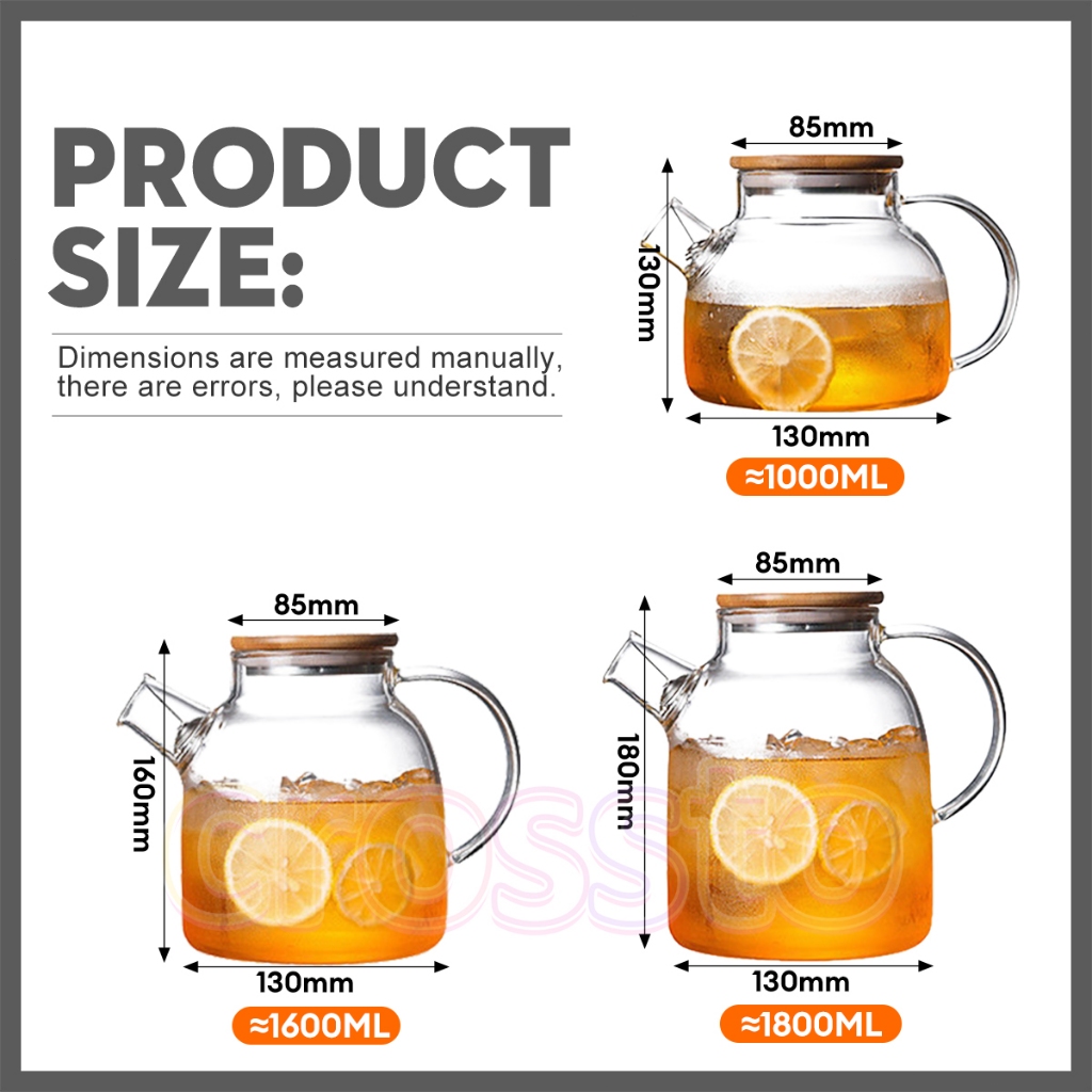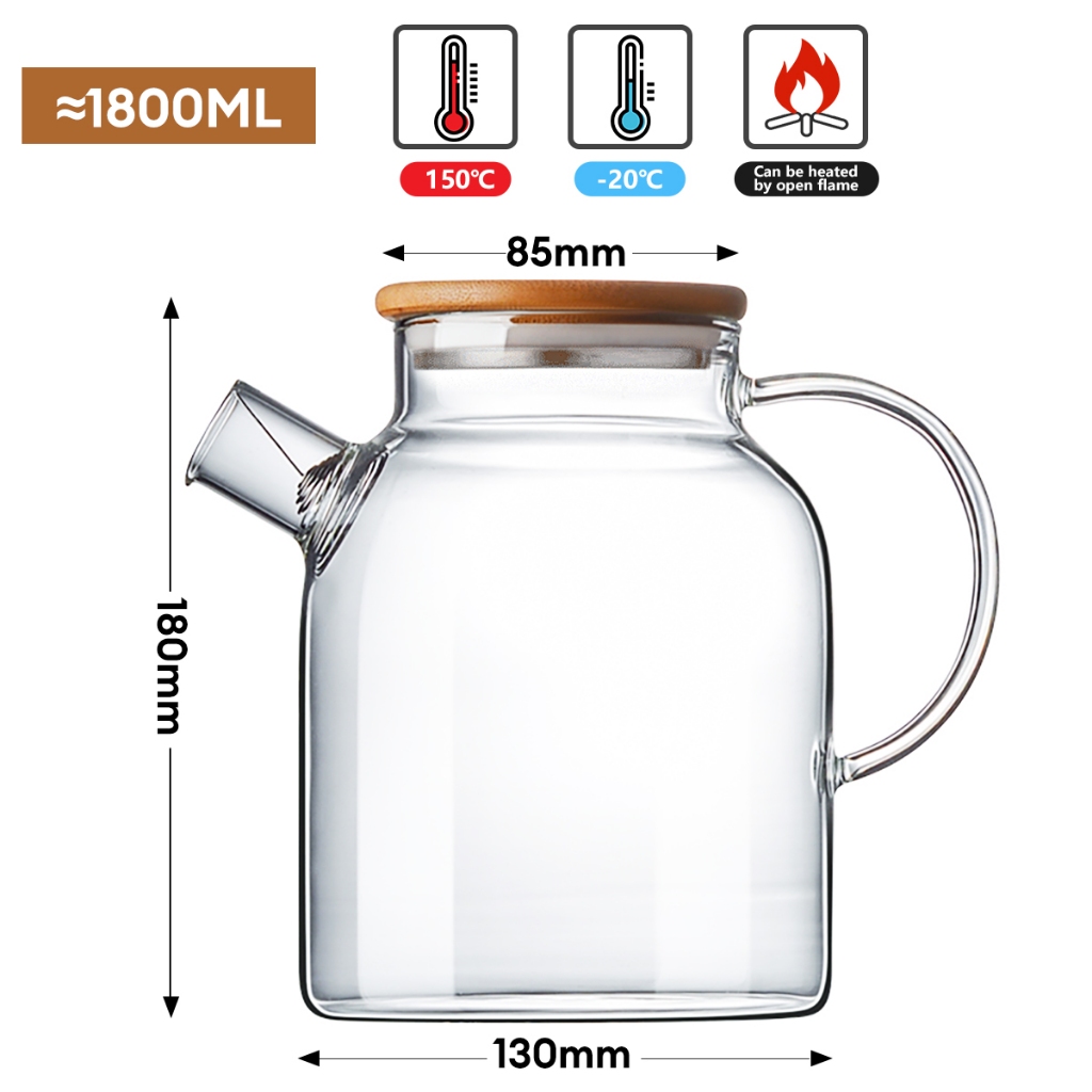 CROSSTO🔥Sesuai untuk dapur gas🔥1L/1.6L/1.8L teko kaca balang air jug tambah tebal teko cerek tutup buluh teko teh bunga