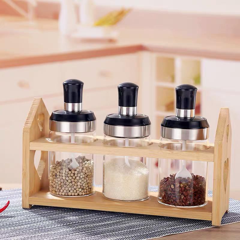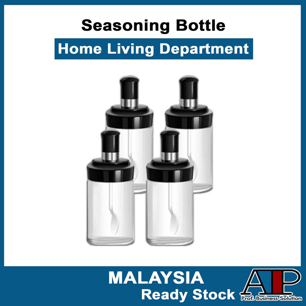 Pantry🍳Botol Perasa Dengan Sudu Transparent Glass Seasoning Bottle Salt Condiment Airtight Jar Spice Container