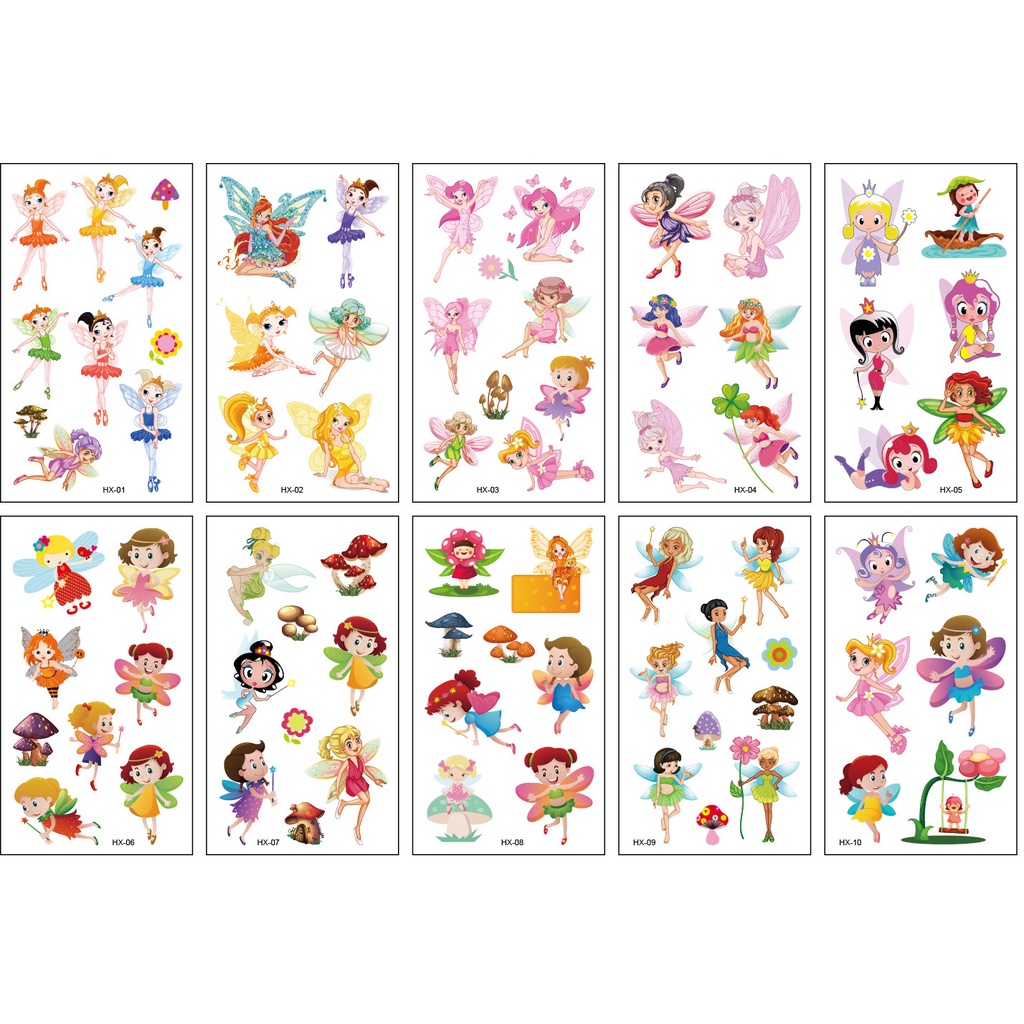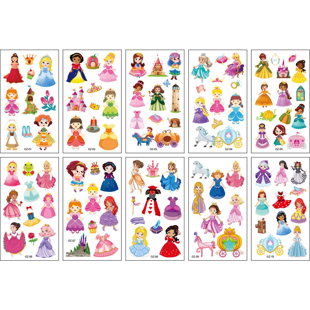 Zoo Animal Dinosaur Princess Fairy Temporary Fake Cute Tattoo Kids Children Birthday (Tatu Palsu)