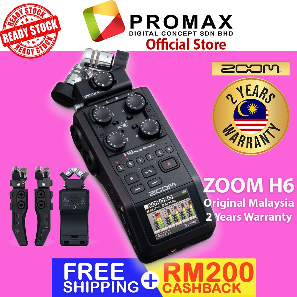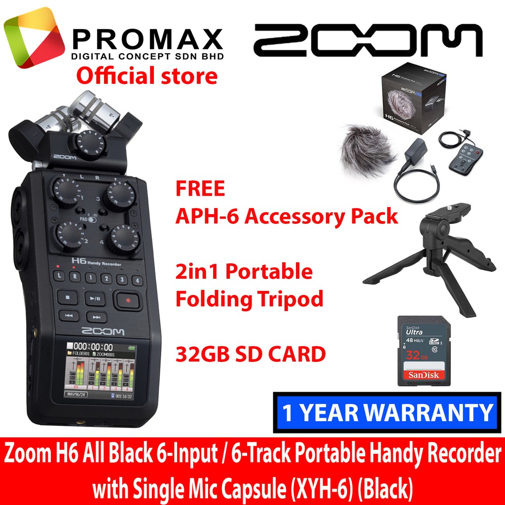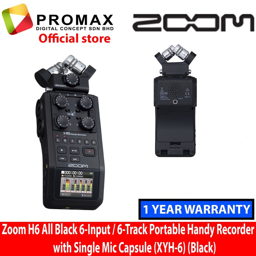 Zoom H6 All Black 6-Input / 6-Track Portable Handy Recorder with Single Mic Capsule (Black)
