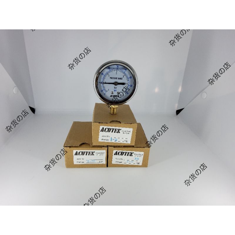 acutek compound pressure gauge, oil filled pressure gauge, 63mm diameter x 1/4" bottom connection, -1-5 bar