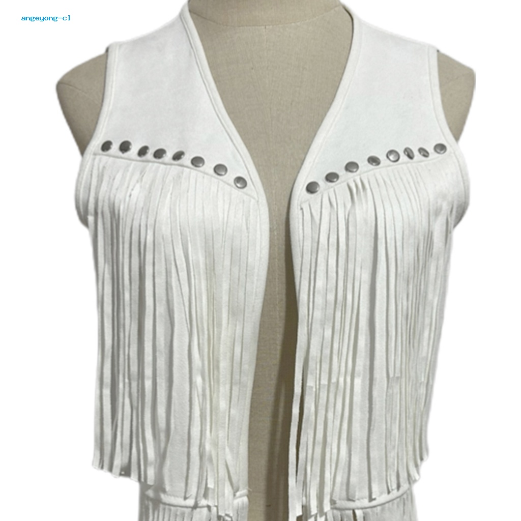 angeyong Women Tassels Suede Vest Women Long Tassel Vest Women Long Tassels Suede Vest Stylish V Neck Vintage Waistcoat with Rivet Decor Ideal for Streetwear Open Front Solid