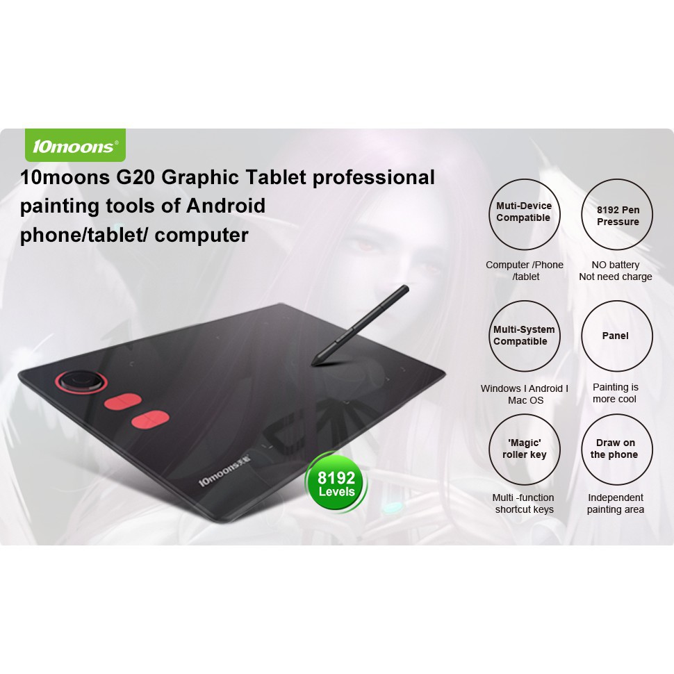 apple pencil drawing tablet stylus pen 10moons G20 Graphic Tablet 8192 Levels Digital Drawing Tablet with roller No need