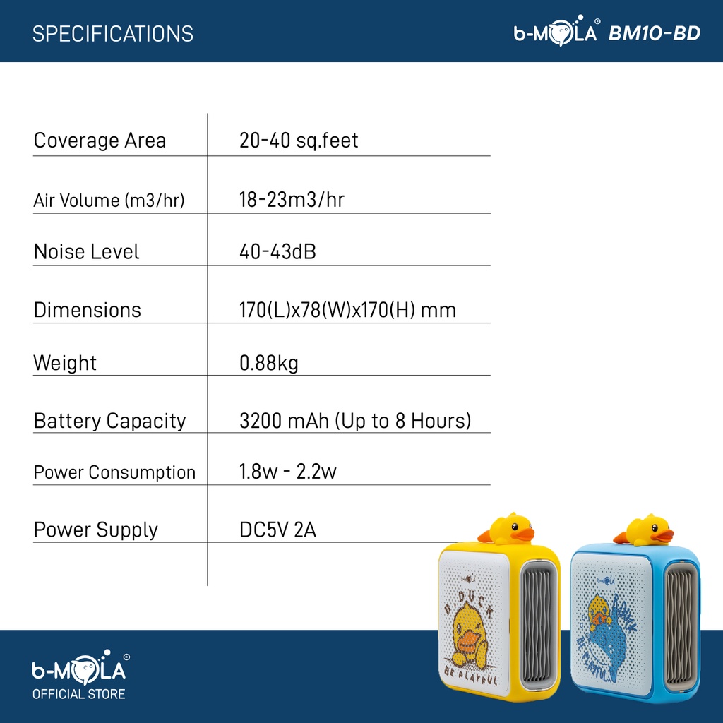 b-MOLA BM10-BD B-DUCK Medical Portable Air Purifier for Home Room Toilet Bathroom Office Saloon Hospital Train Station Pet USB Rechargeable Air Purifier Baby Air Purifier USB Rechargeable Small Personal Mini Air Purifier 空气净化器随身杀菌家用汽车 空氣淨化器殺菌