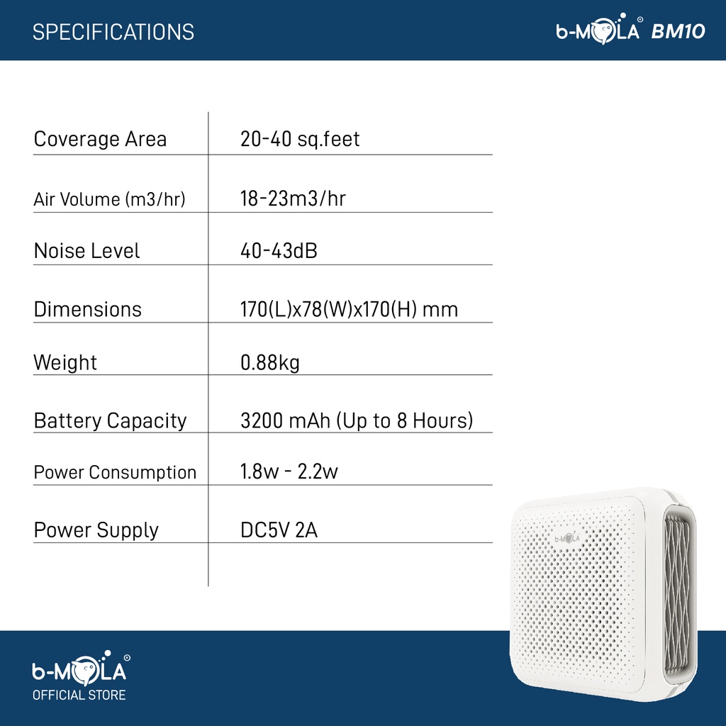 b-MOLA BM10 Medical Portable Air Purifier for Home Room Toilet Bathroom Living Room Office Saloon Hospital Train Station Confinement Center Pet USB Rechargeable Air Purifier Baby Air Purifier Large Coverage Area Remove Odour Smell Dust Smoke 随身 空气净化器 随身杀菌