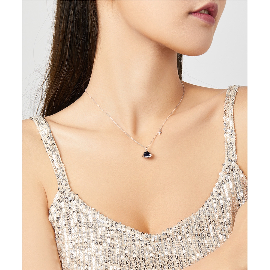 bamoer 925 Sterling Silver Blue Planet Pendant Necklace for Women Stars Design Engagement Statement Jewelry Colllar BSN166