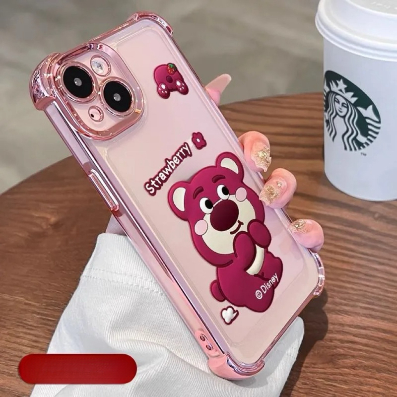 casing Honor X9A X7B X7 4G 9X 9X Pro X50 X50 GT 200 Smart 5G Kotak telefon beruang strawberry silikon empat sudut