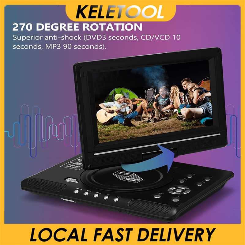 7.5 inch Portable DVD Player with Headphones Extended 4-Hour Battery HD Swivel Screen Supports CD DVD USB SD Card