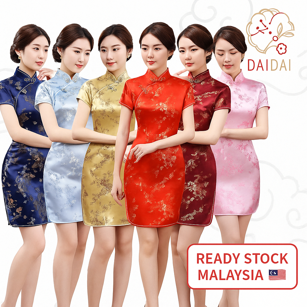 daidai (Ready Stock) Cheongsam 新年 旗袍 Traditional Chinese New Year CNY Short Sleeve Cheong Sum Sam Qi pao Qipao Dress