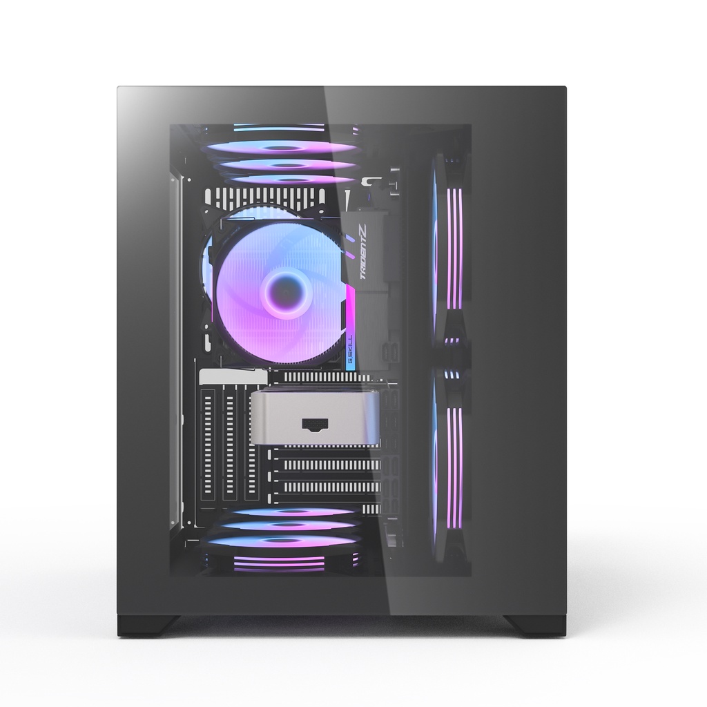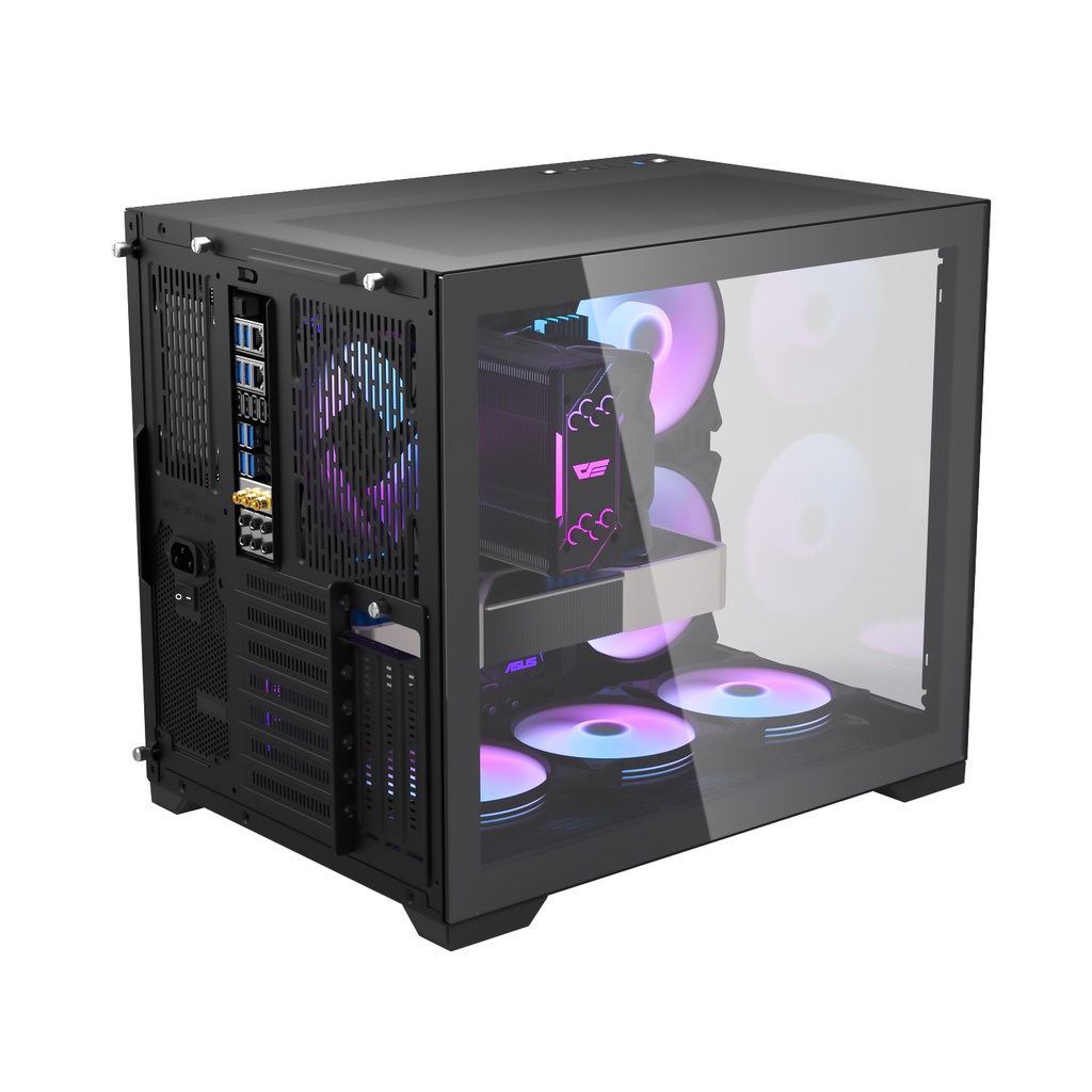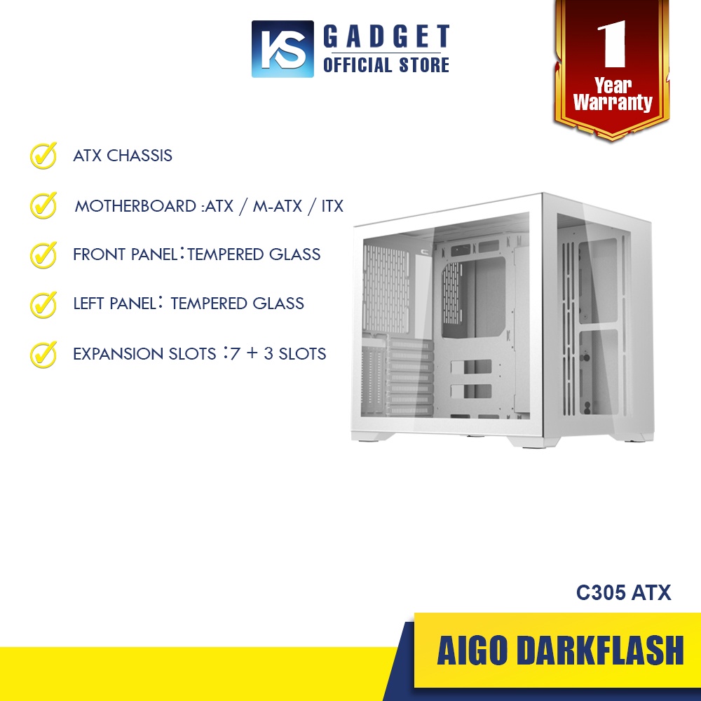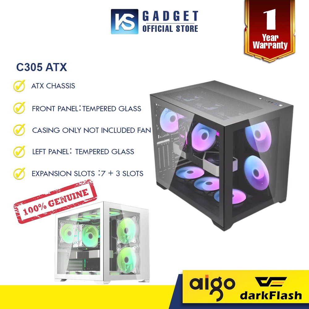 darkFlash Aigo C305 ATX Desktop Casing Case Full Window (Front/Side - Tempered Glass, Dual Chamber Design) Black & White