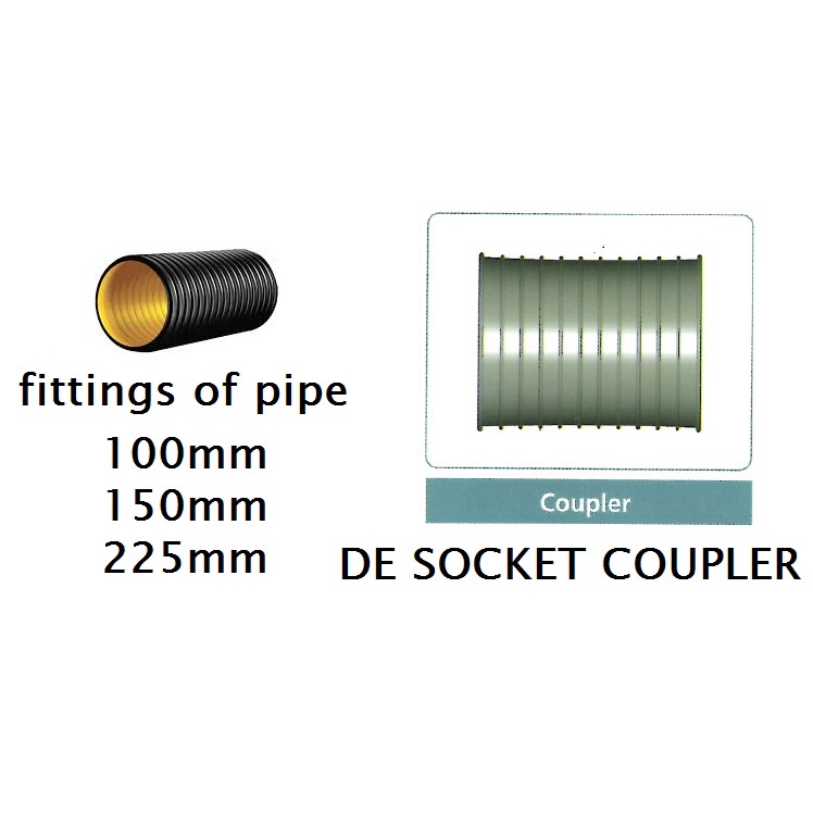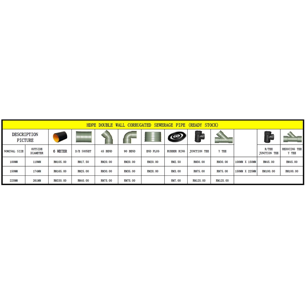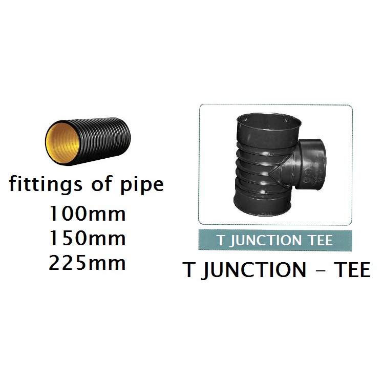 double wall corrugated sewerage sewer drainage pipe yellow black fittings dn100mm dn150mm dn225mm elbow bend socket tee
