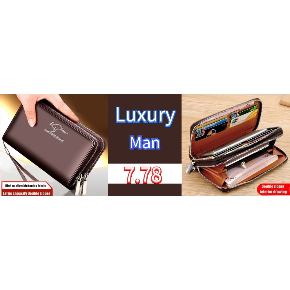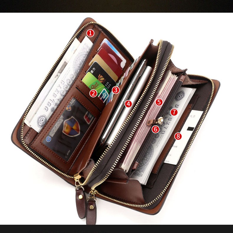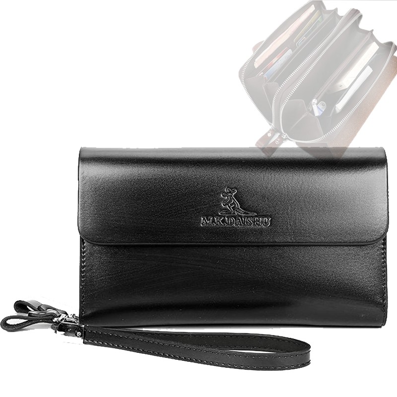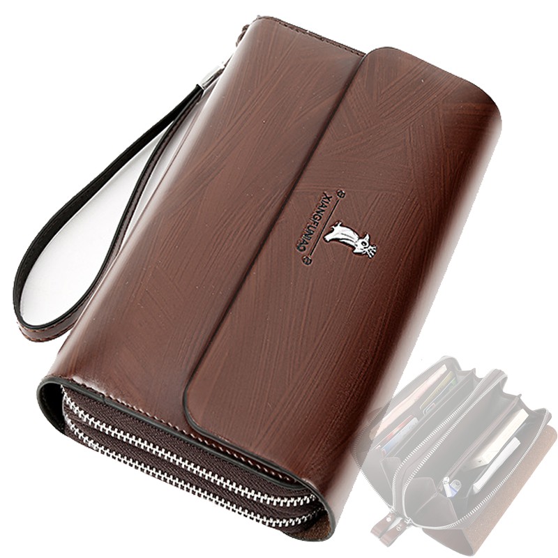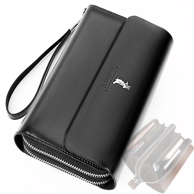 double zipper men's wallet Retro luxury clutch bag leather wallet Organizer big capacity passport cover male portefeuill