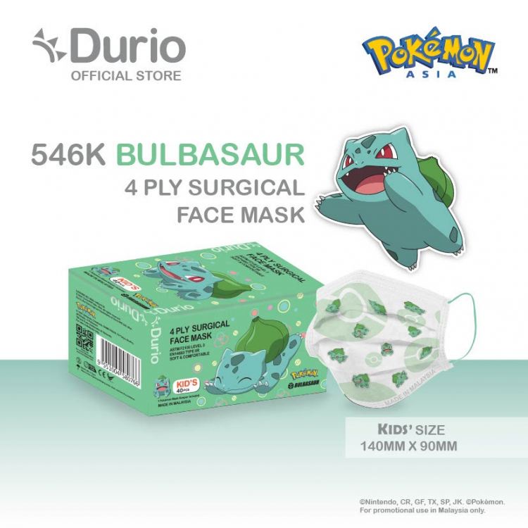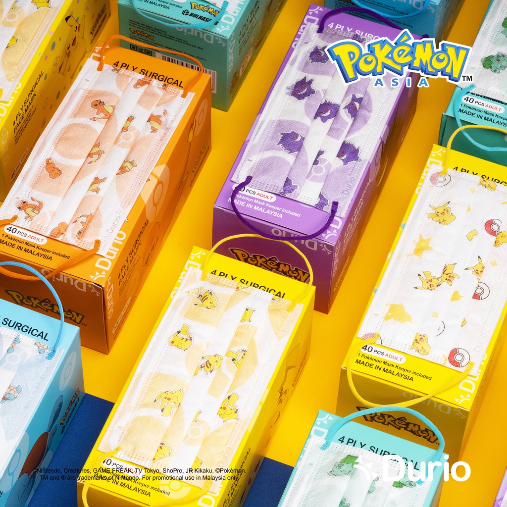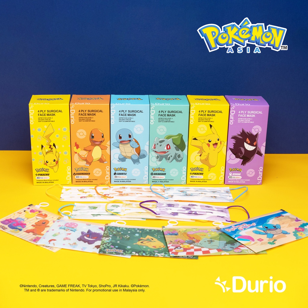 durio face mask Pokemon 4 Ply Surgical Face Mask 546A /546K 40pcs / 1 Box [Pikachu, Charmander]