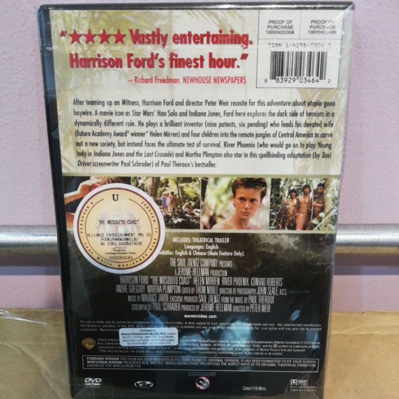 dvd adventure THE MOSQUITO COAST Harrison Ford Helen Mirren River Phoenix original movie
