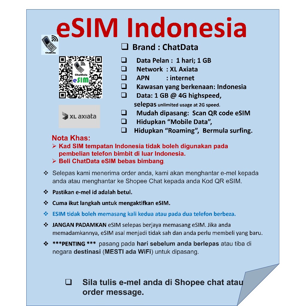 eSIM Indonesia Pelancong SIM, Network Utama (XL Axiata) 4G High Speed, Hotspot, Penghanteran online, Tiada tukar fizikal