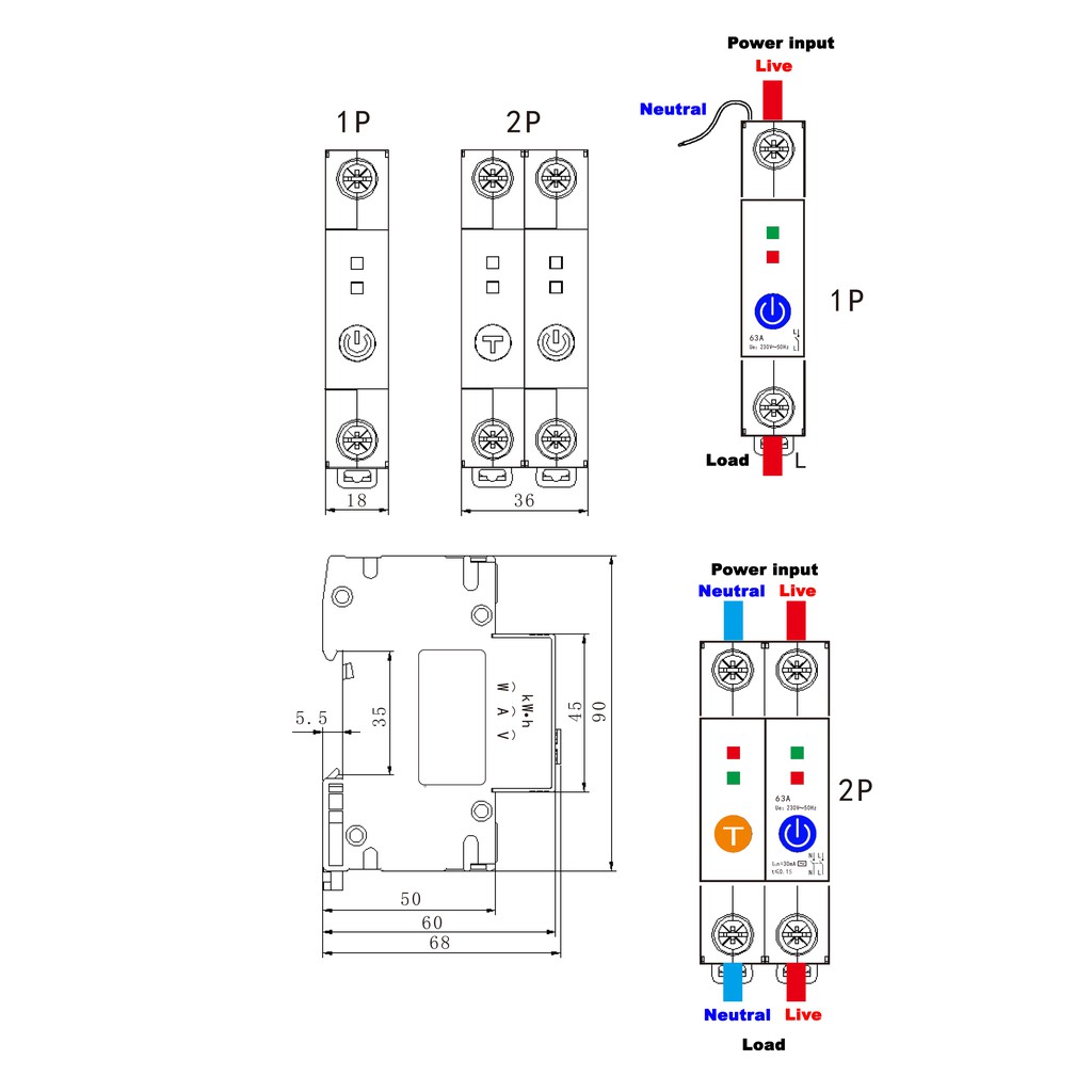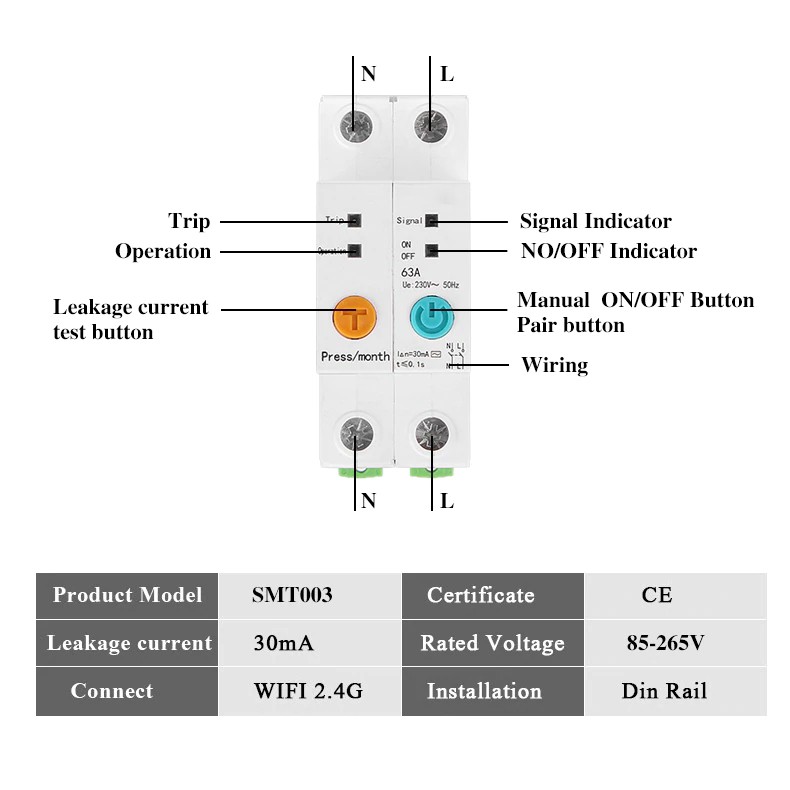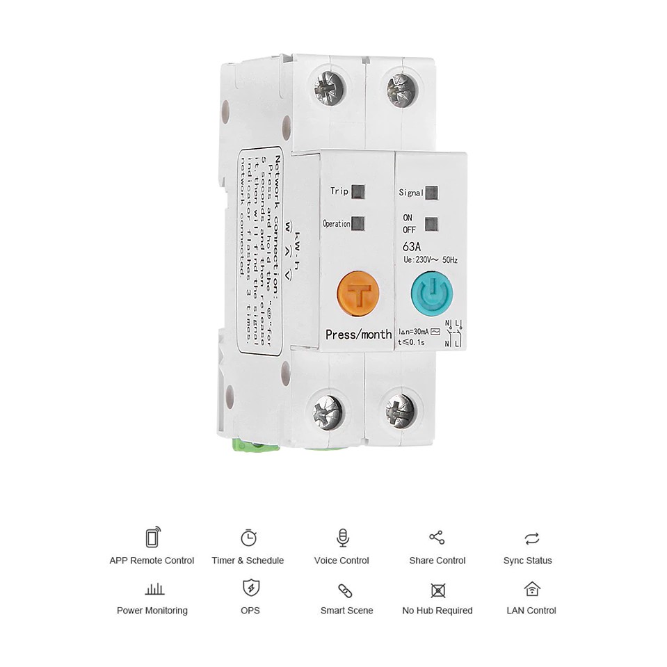 eWeLink 2P Wifi 63A Circuit Breaker with Energy Meter Power Consumption Monitoring