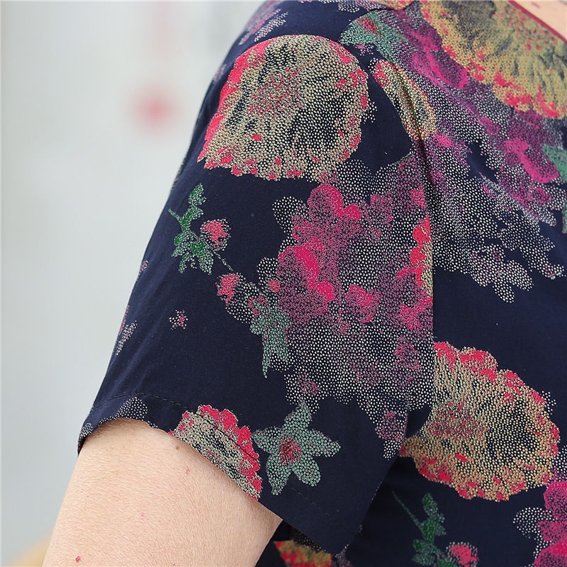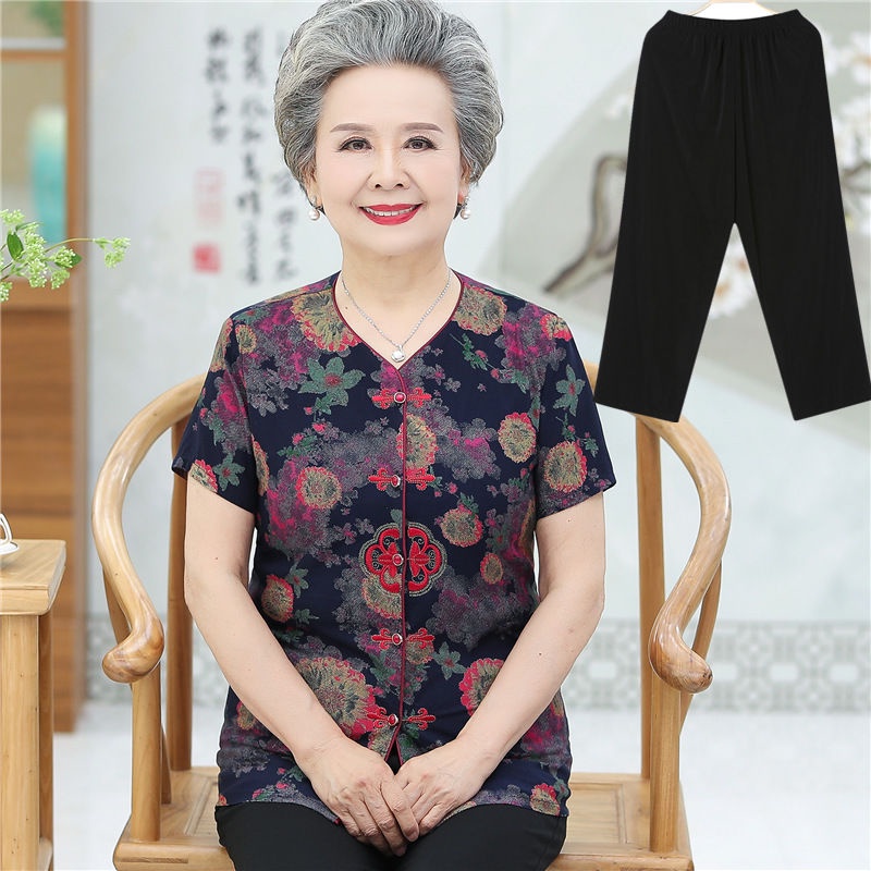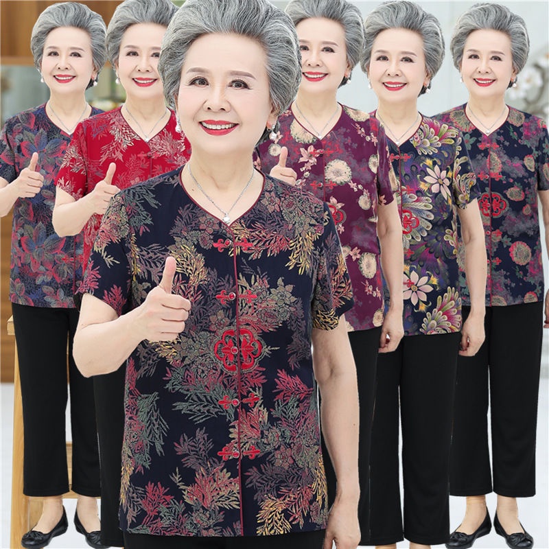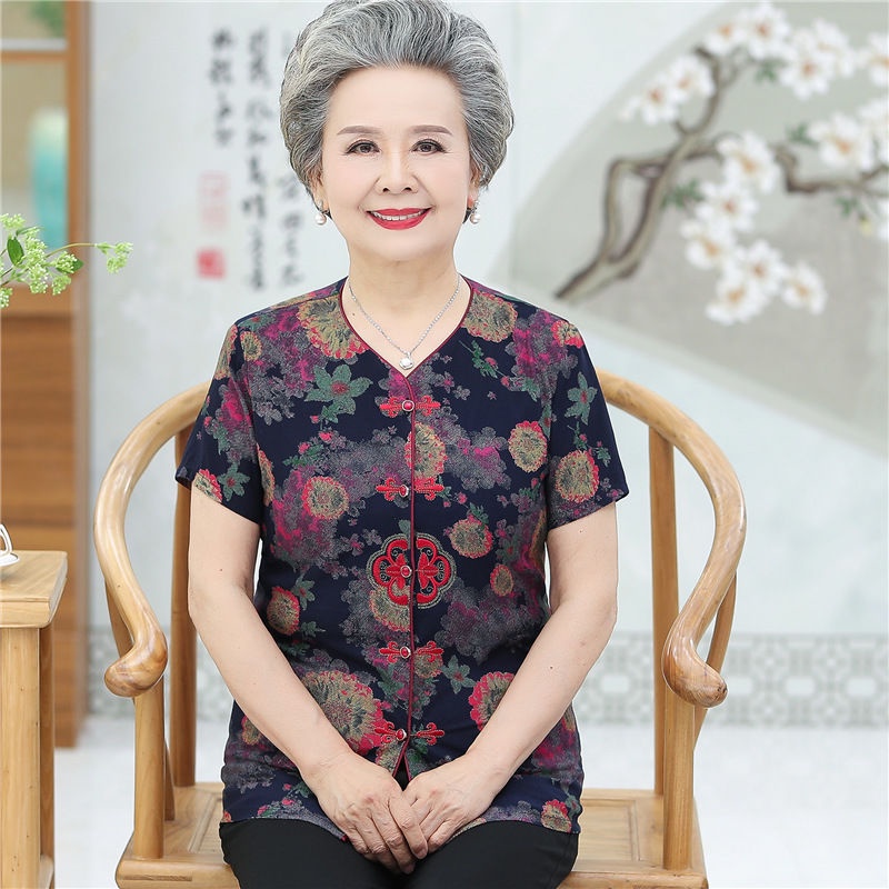 elderly women blouse randma's summer one-piece suit 7080-year-old 60 middle-aged and elderly short sleeved women's cotton silk elderly clot
