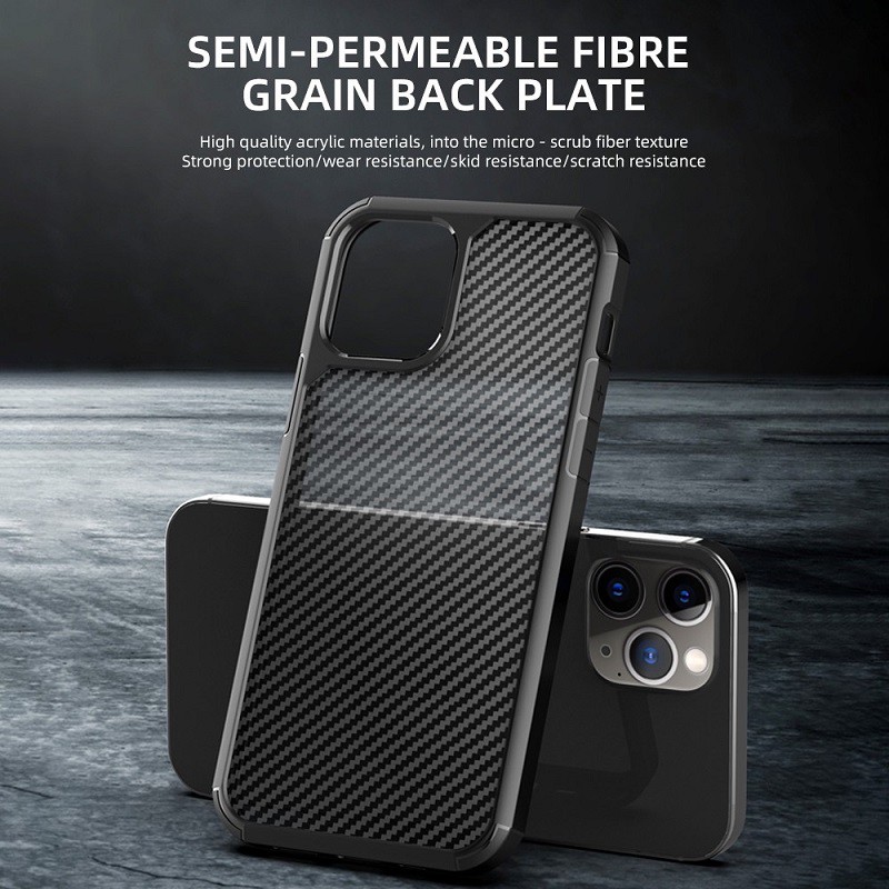 Sarung Telefon Tahan Gegaran IPAKY Carbon Fiber Matte Acrylic untuk iPhone 16 15 14 13 12 11 Pro Max / iPhone Case