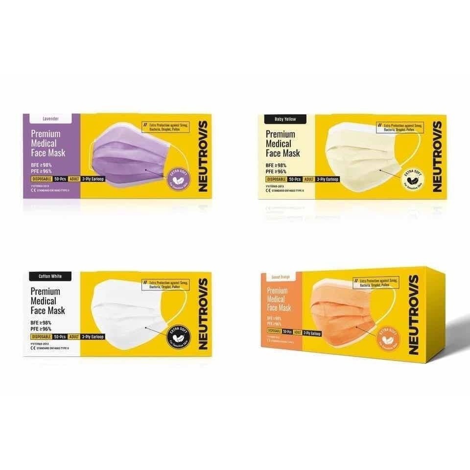face mask 3ply medical face mask face mask kids Neutrovis Face Mask 3 Ply White&Yellow&Orange&Pink&Purple/ 4 Ply Black&D