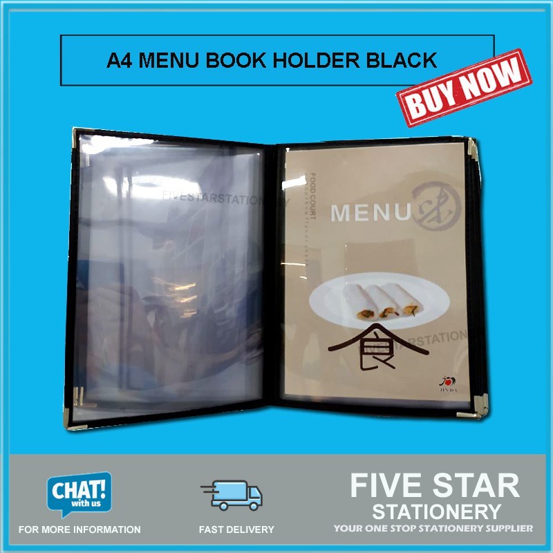 fivestar2u A4 Menu Book Holder Black Restaurant Cafe Transparent Clear Menu Recipe Buku Menu