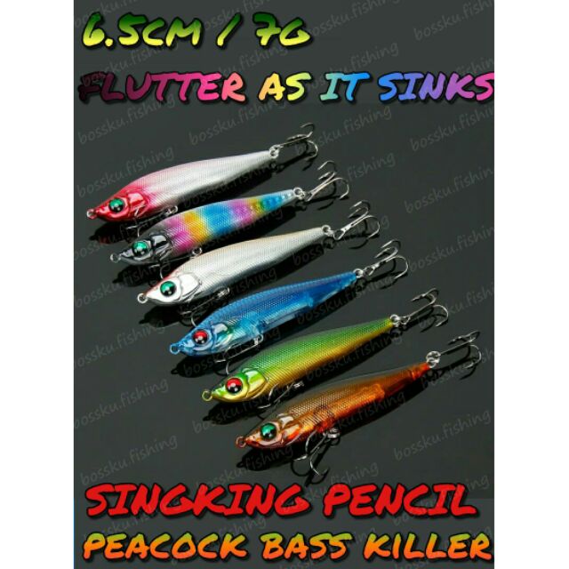 flutter pencil 7g/6.5cm sinking pencil , Gewang killer Peacock bass , siakap, ikan bulan Lure fishing