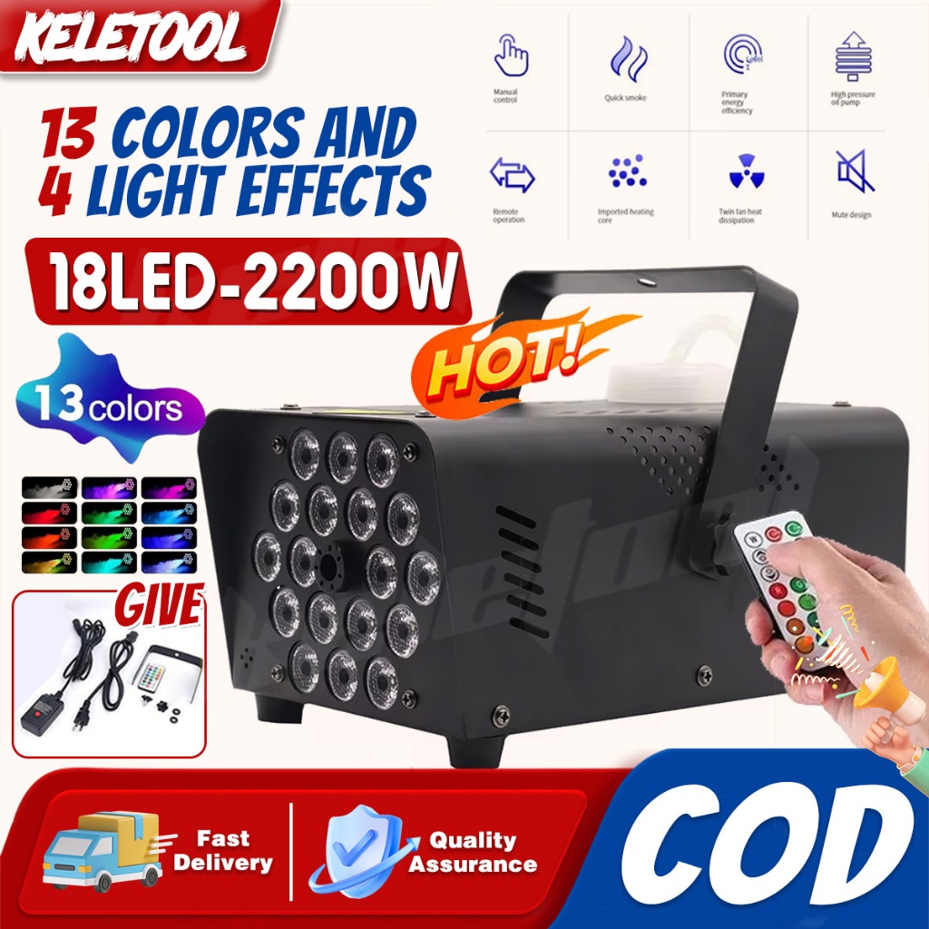 fogging machine 2200W Fast Shipping Disco Colorful Smoke Machine Mini LED Remote Fogger Ejector Dj Christmas Party Stage Light Fog